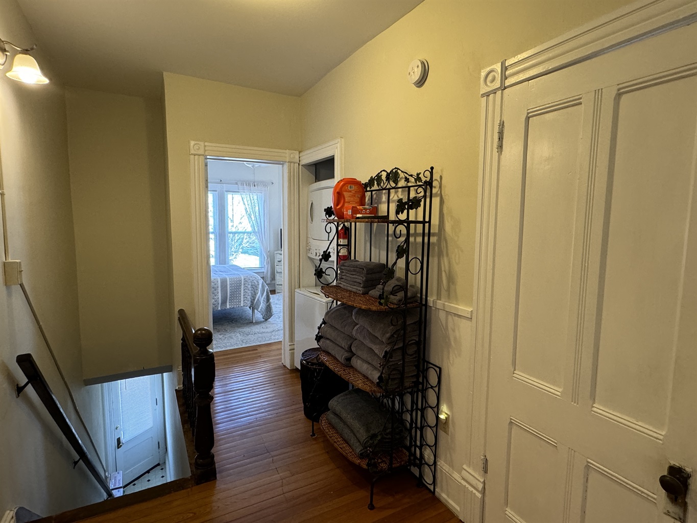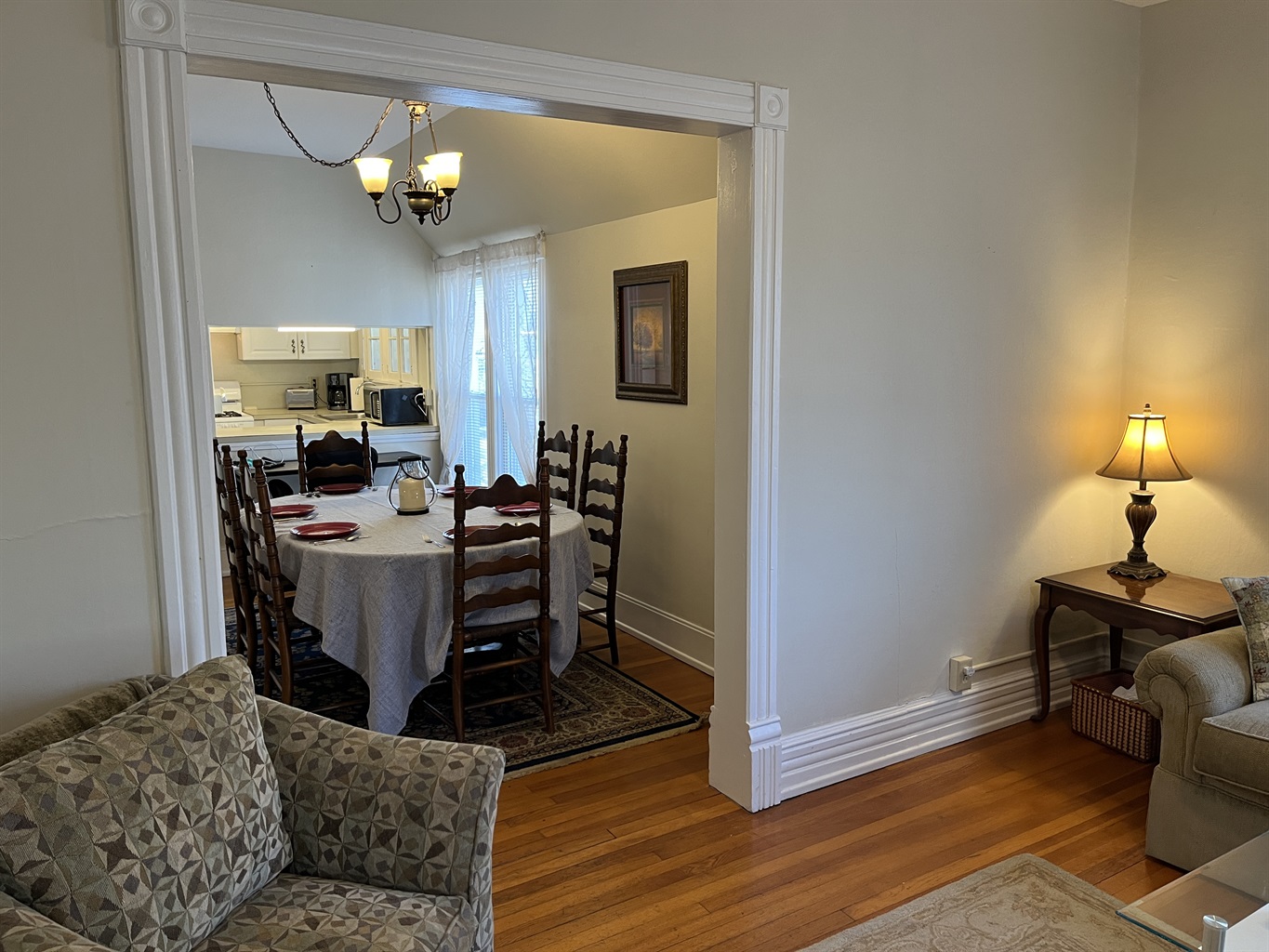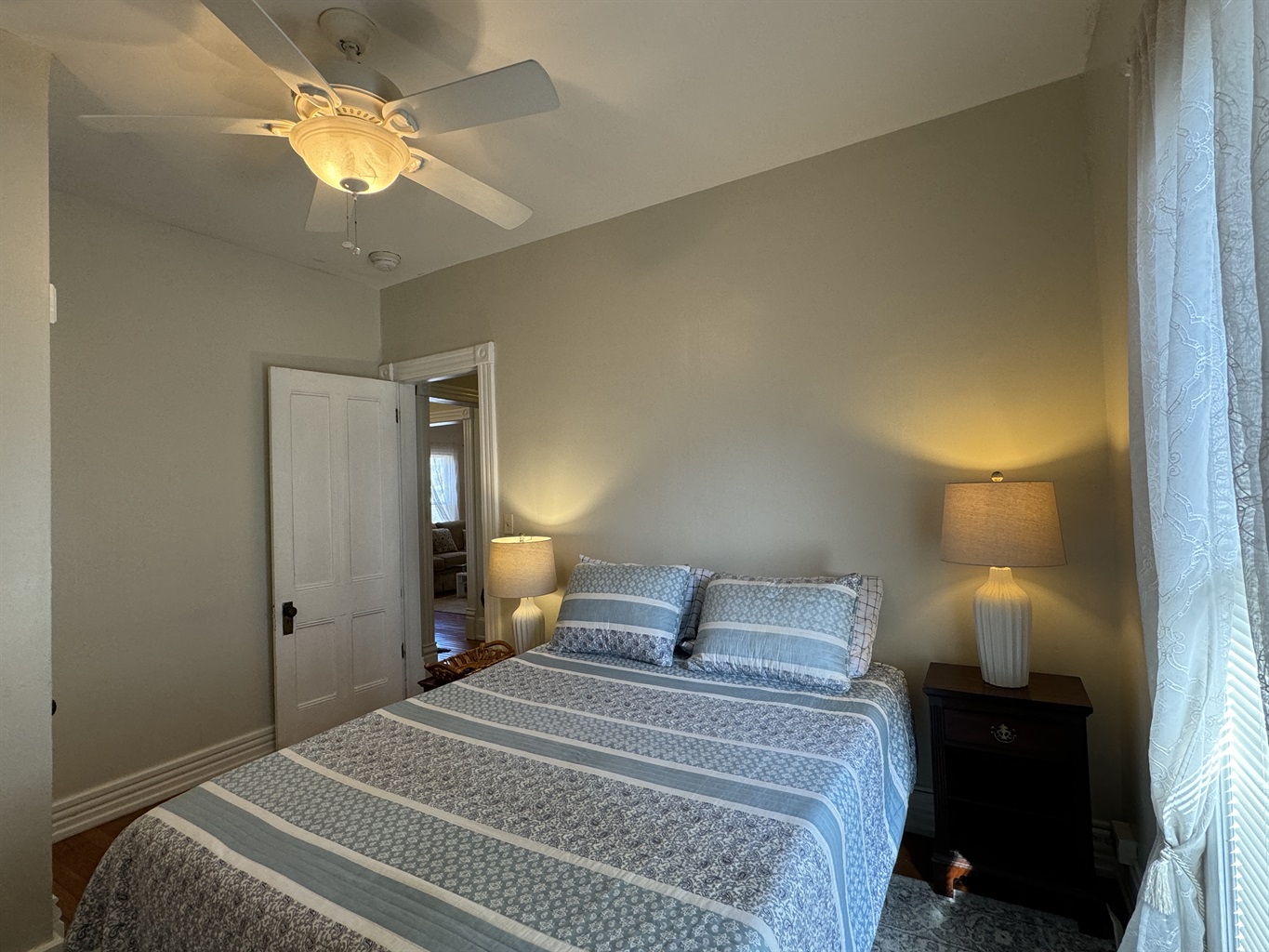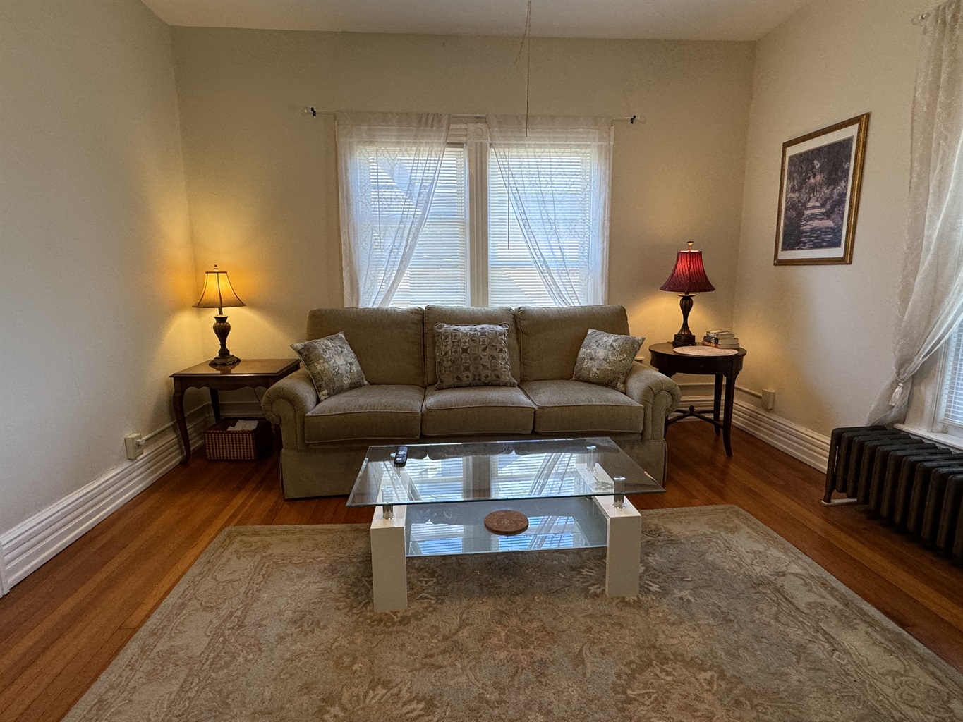 This quaint apartment is just what a small group needs for convenience while in town. There are 2 bedrooms each with a Queen bed, and ROKU TV. Plenty of natural light fills the rooms through the large windows. The center hall has a convenient laundry nook with a stackable washer/dryer as well as a full bathroom with tub/shower, which is just steps from each bedroom. A large living room is in the front of the apartment overlooking Main Street. For those of you who have to put in some hours working between baseball games, there is a desk in the dining room, perfect for all your WFH needs. A very functional layout between the kitchen and dining room will allow for easily getting meals on the table. The kitchen has everything you'll need for a short stay in town, except groceries, of course. There are a handful of grocery stores all within 5 min or less and tons of restaurants if you want to skip cooking while on vacation. Of course, we save the best for last, the sun porch! This terrific room is at the back of the apartment and looks out over the neighboring backyards. Giant windows allow beautiful sunlight to fill the room.