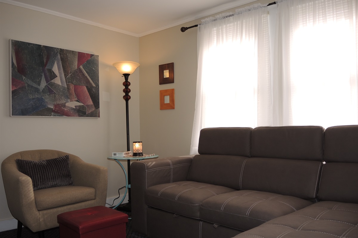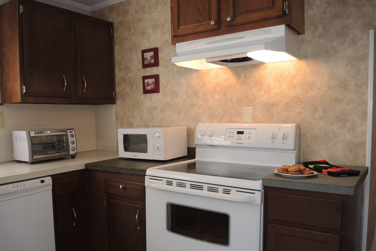 The spacious eat-in kitchen is a favorite gathering place. This immaculate home features a queen bedroom and a double bedroom. In addition to the 2 bedrooms, a fold-out sofa in the living room provides extra sleeping for 2. The bath is off the hallway and has a tub and a shower.
