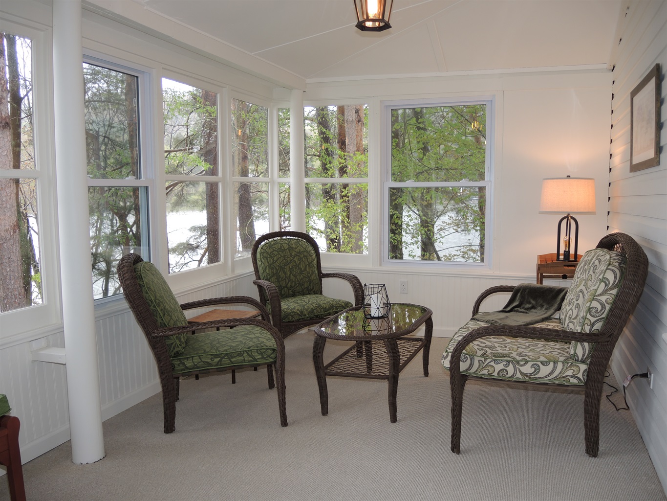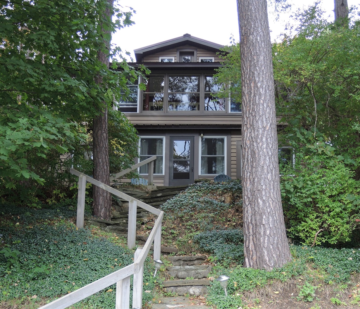 Ardeevin is a welcoming 2 bedroom / 2 bath home that will comfortably sleep 6. The main level features an enclosed sunroom with glass on 3 sides. The main level sunroom includes a seating area and a dining area. One bedroom and one bath are located on the main level. The lower level has another sun room with glass on 3 sides as well. The lower level sunroom has a daybed which has a twin bed and a trundle twin. There is 1 bedroom and 1 bath on the lower level.