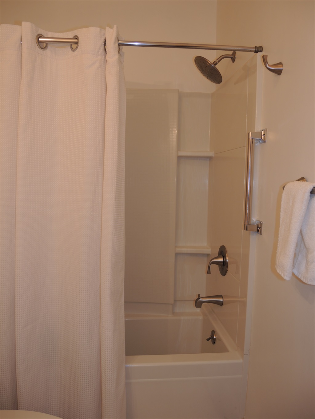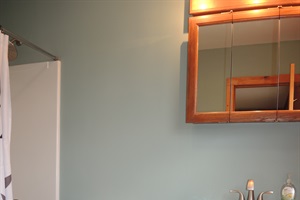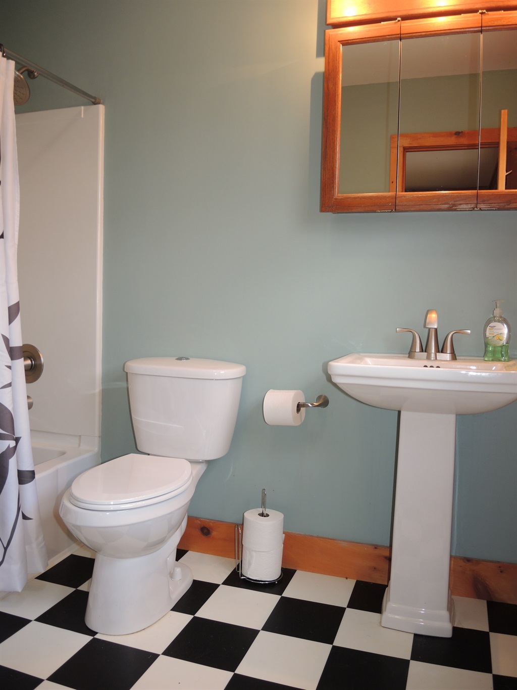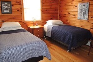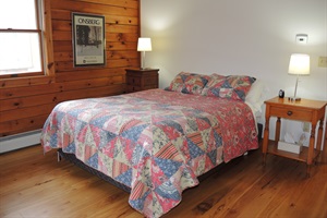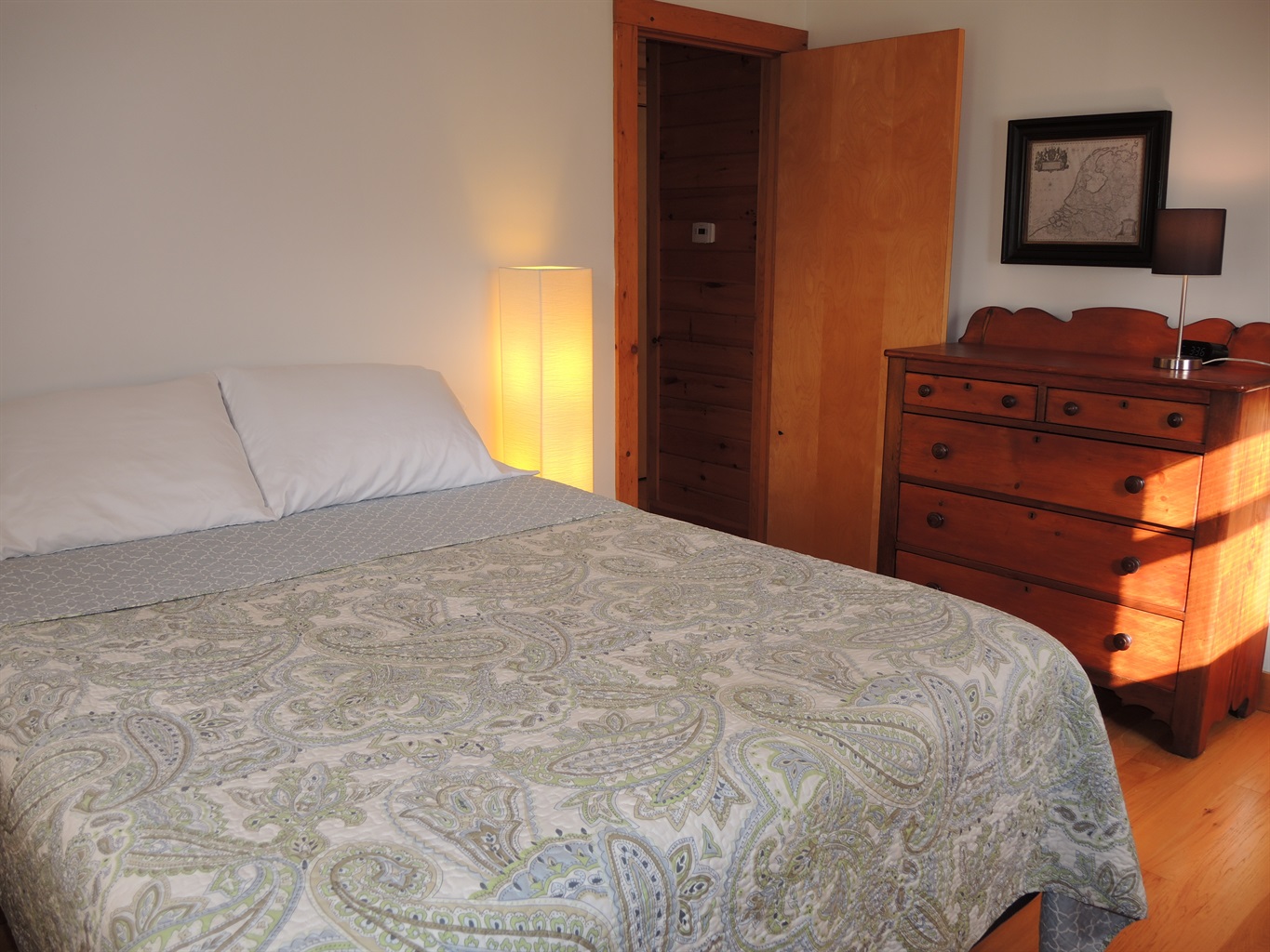 The three bedrooms include a queen bedroom with en suite bath, a second queen bedroom and a bedroom with two twins. A second bath is off the hallway between the queen and twin bedrooms.