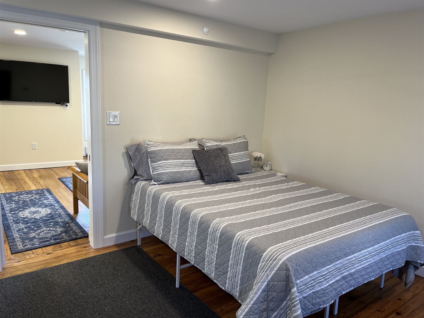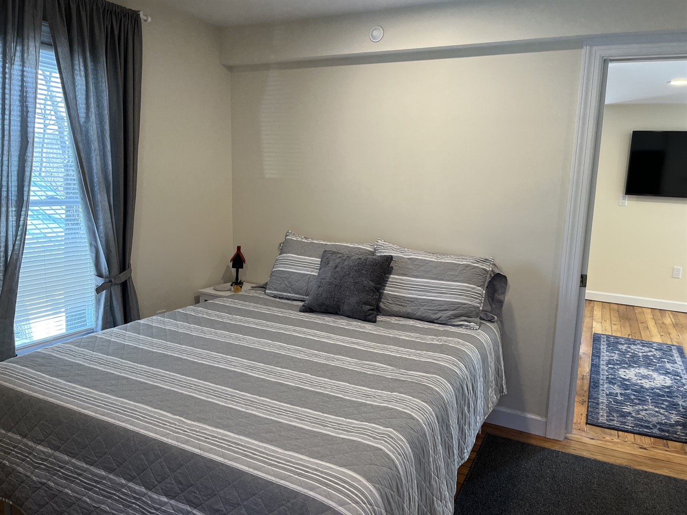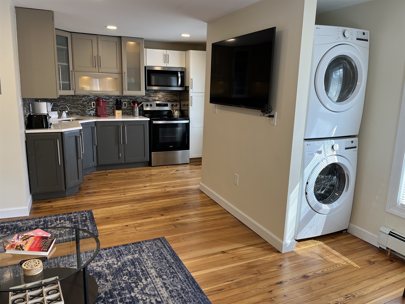 This apartment has been renovated from top to bottom, is in incredible condition and has everything you need for your stay. The large bedroom overlooking the street has 2 queen beds. There are 2 SmartTVs, one in the bright and airy living room and one in the 2 Queen bedroom. A stackable washer/dryer for your use is in the living room. Enjoy some quiet time in the shared front sun porch.