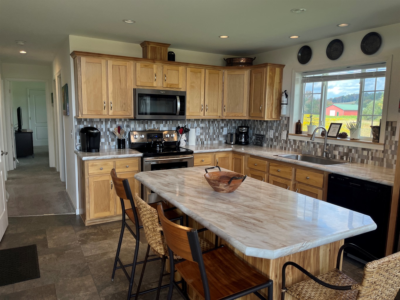 If you do have to head out, the Village of Cooperstown and the Dreams Park are only about a 20-25 min ride through the rolling country hillside. Inside you will find 3 queen bedrooms and 2 baths and an open floor plan for the kitchen, living, and dining area. This layout makes for a great space to hang out and relax while taking advantage of the wrap around deck and views. If outside activities are your thing, your host provides a basketball hoop, pickleball court and cornhole toss to help pass the time. Upstairs in the game loft, there is a table for playing cards and board games as well as a Ping-Pong table and a pool table. Budnick's Lakeview calls for relaxation. The wonderful deck with high visibility railings, gas firepit and lounge furniture make for a perfect spot to enjoy a book, cocktail or even do work if you have the misfortune of having to still be on the clock while on vacation.