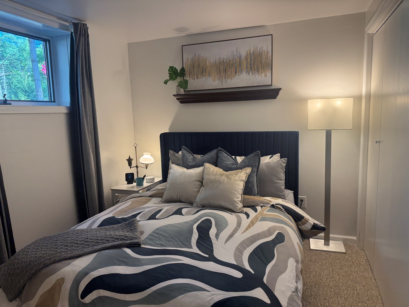 2 Bedrooms • 2 Bathrooms 2 Baths • Sleeps 3-5- NEW LISTING - Casa Bella - This home couldn't be named more perfectly. It is a beautiful home, inside and out, with tremendous thought put into the design, decor, and furnishings. Enjoy little moments throughout the space, whether it be snuggled on the cozy couches, reading in the bedroom reading nook, lounging on the deck overlooking the water, or even sit outside enjoying nature, this home will do good for your soul. Your host has spent countless hours changing this A-frame cabin into a getaway retreat on the water. Bright sunlight streaming through the large windows, cozy spots throughout the home, an office with a view, frequent visits from bald eagles, waterfront access with kayaks, and so much more will make certain that your time here is one to remember.