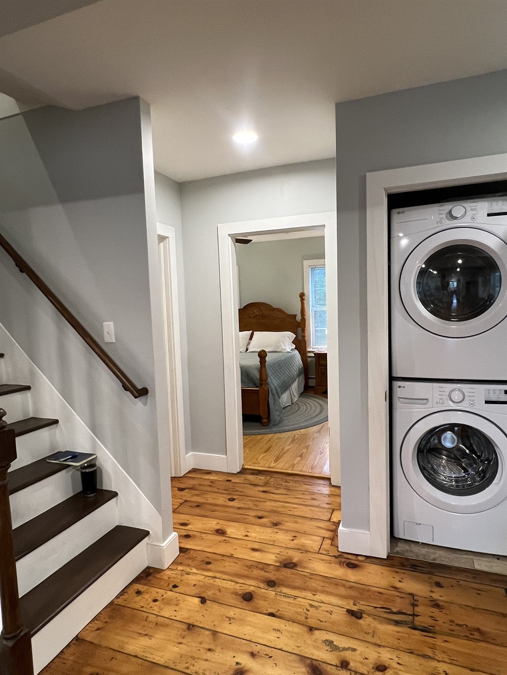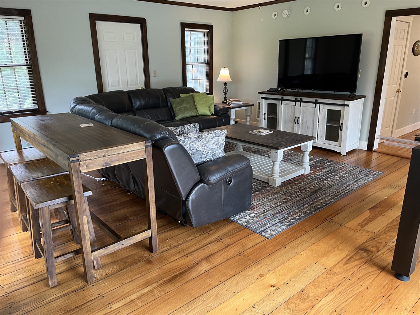 There are 5 bedrooms and 4.5 bathrooms with room for up to 10 guests. The first floor is made up of the master bedroom with an en-suite full bathroom. The main entrance off the huge front porch has a half bathroom, laundry, a sitting area with a round table for games and entertainment. The fully equipped Kitchen is located through the sitting area in the back of the house, overlooking the pond. Eat inside or out, enjoy easy access to the large back deck from the kitchen and the living room. The main living room is slightly separated to provide private TV watching or a game of Foosball! The original wide plank farmhouse floors run through the 1st floor, exposed beams and slate floors are some of the magical classic features you will find here. The 2nd floor has 4 bedrooms and 3 bathrooms. 2 bedrooms with en-suite bathrooms and a hallway bathroom complete the 2nd floor.