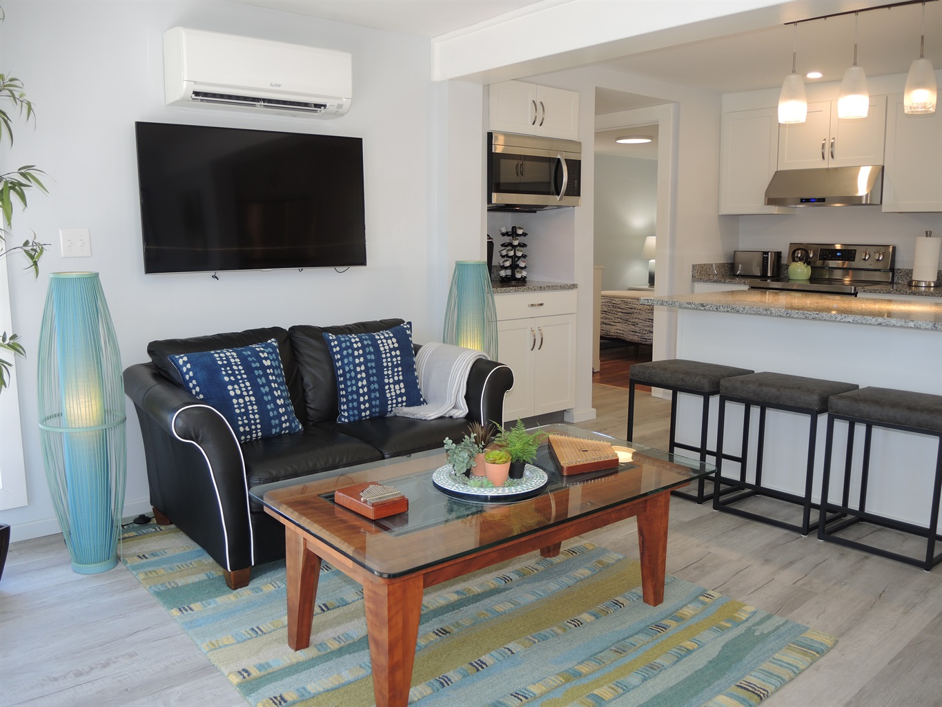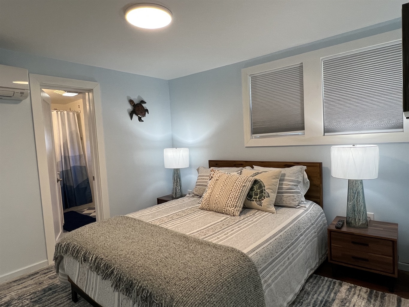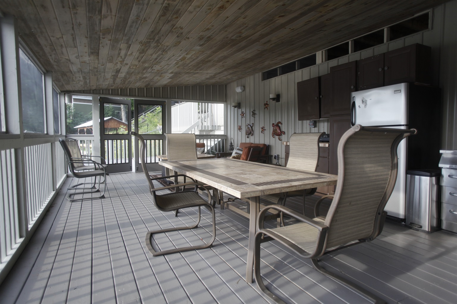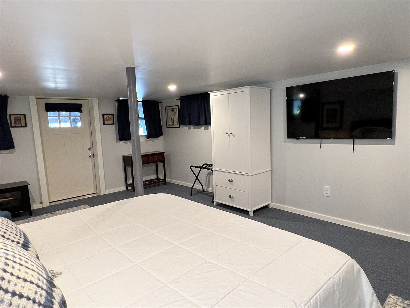 The cabana is complete with dining and lounge furniture. The beautiful midday and afternoon sun dances on the water while you relax and enjoy. Back up at the house there are two 1st floor bedrooms, as well as a lower level King bedroom with access to outside. Tasteful modern décor and furnishings make this destination one you will want to return to year after year.