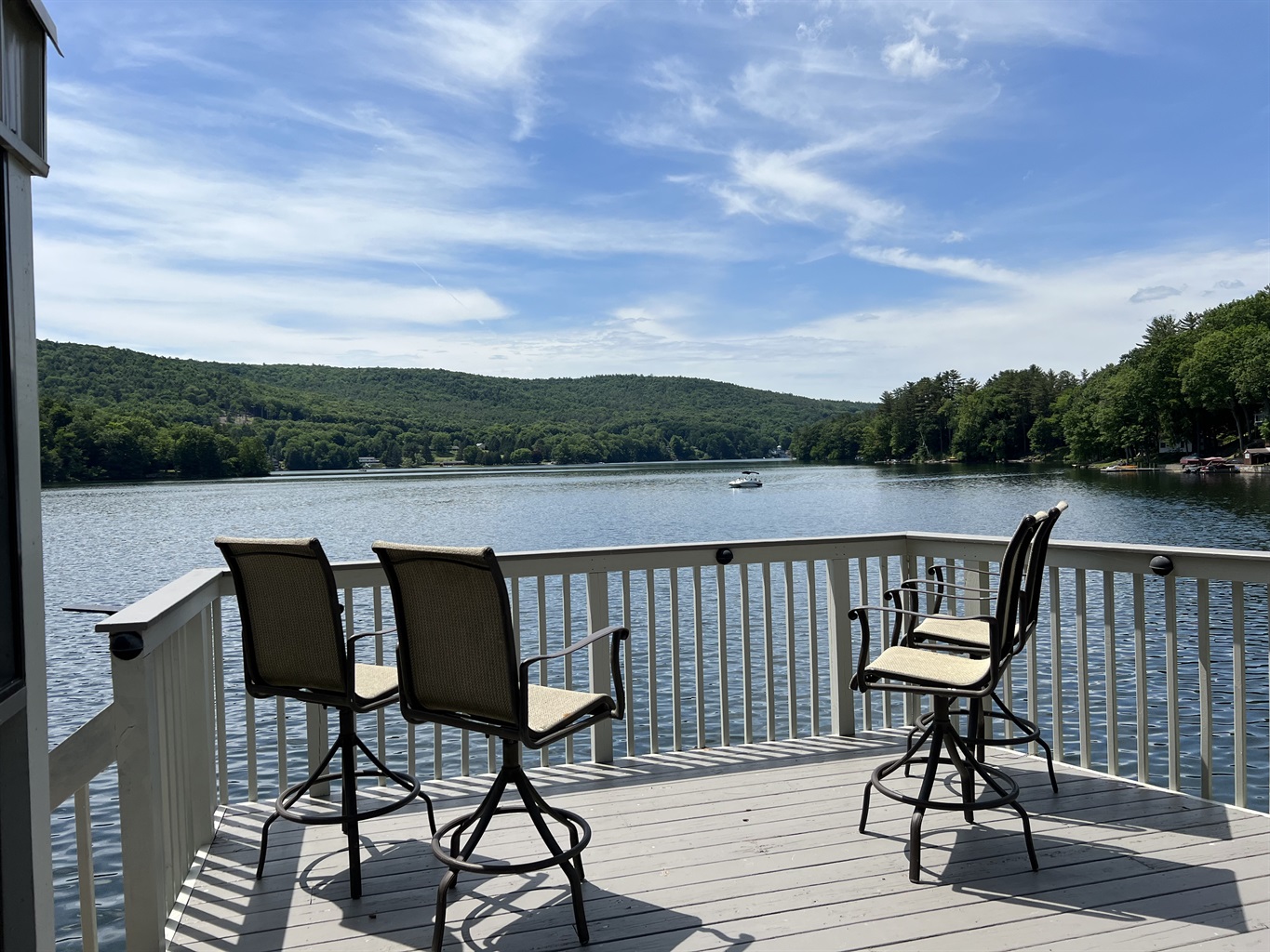 Dancing Waters - A beautifully renovated house on the shores of Goodyear Lake with amazing sunset views! This property screams water enjoyment from the minute you walk inside. Spectacular views of the water from the kitchen and living area. Multiple levels of decking lead you down to the water, with a covered screened in cabana half way down.
