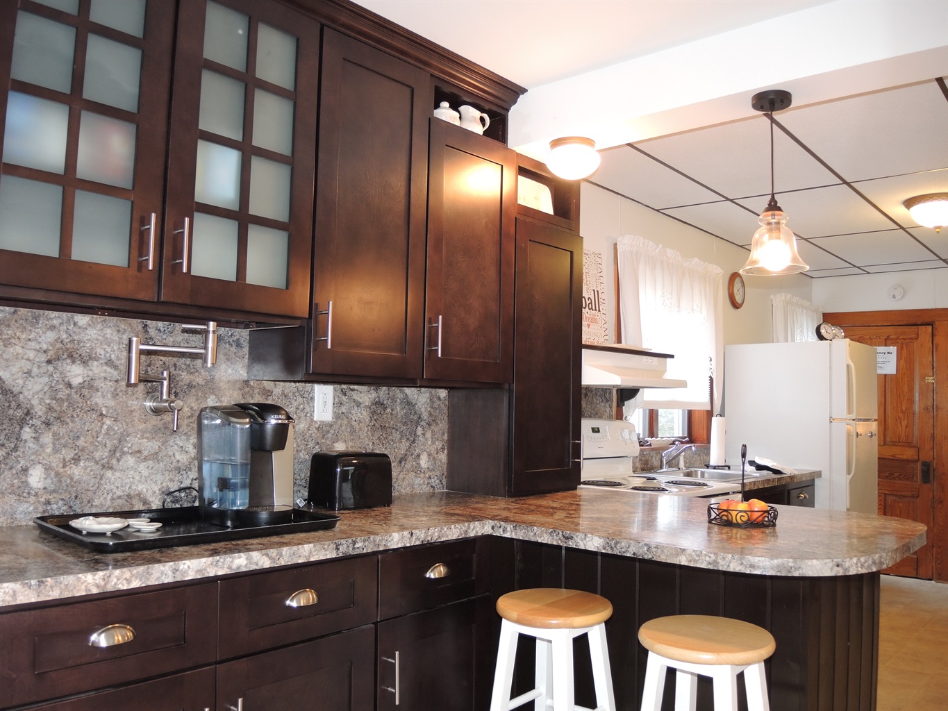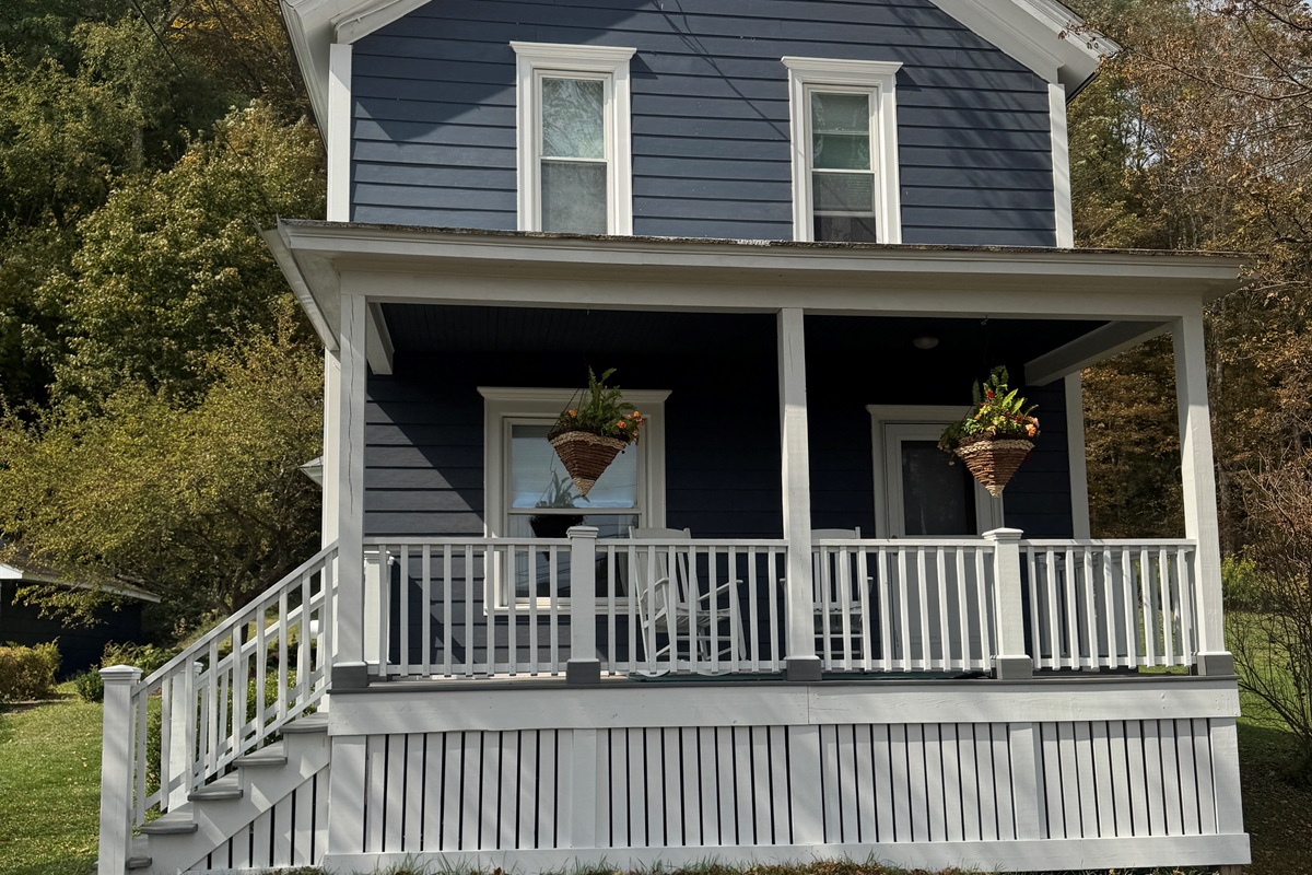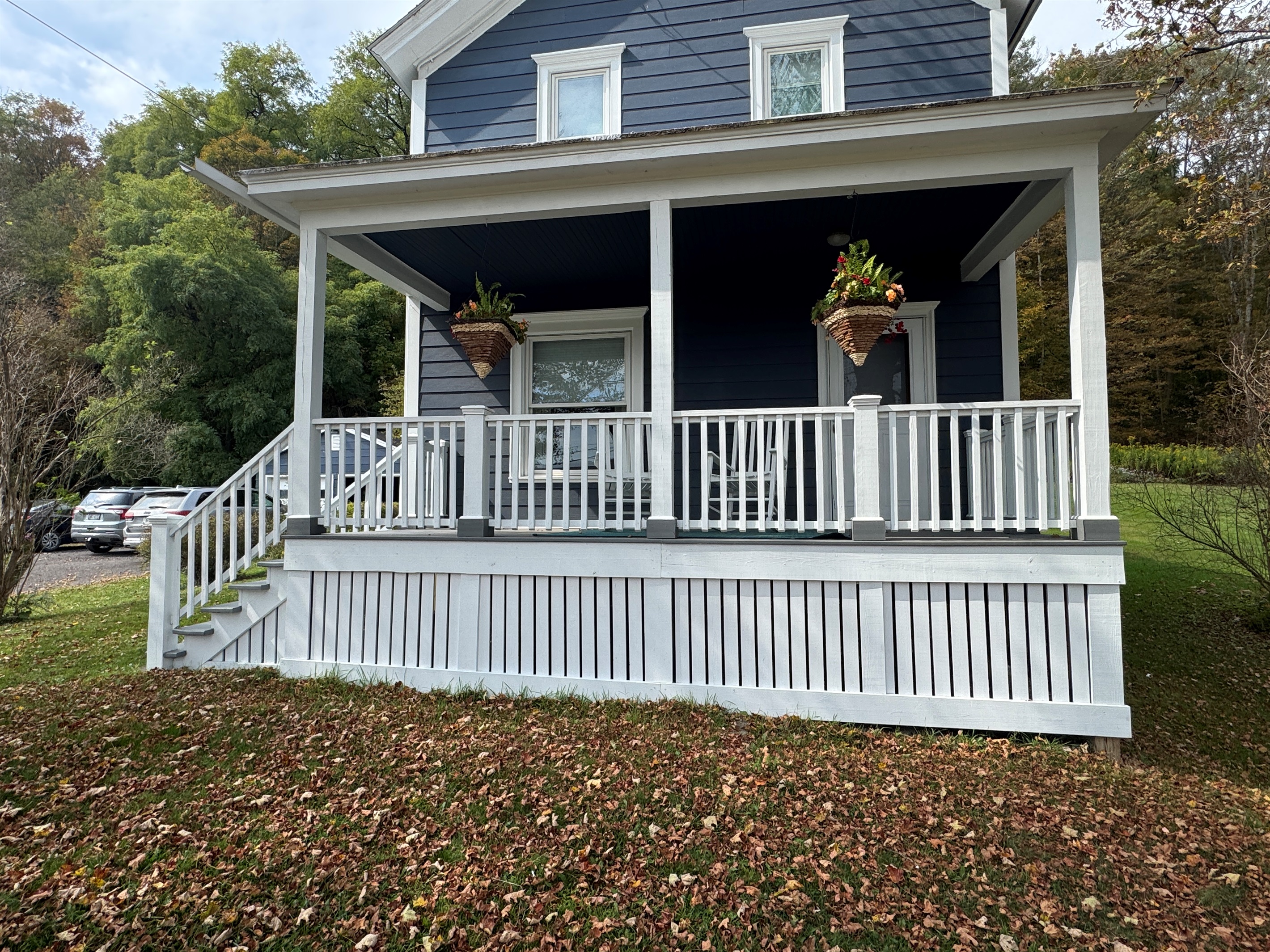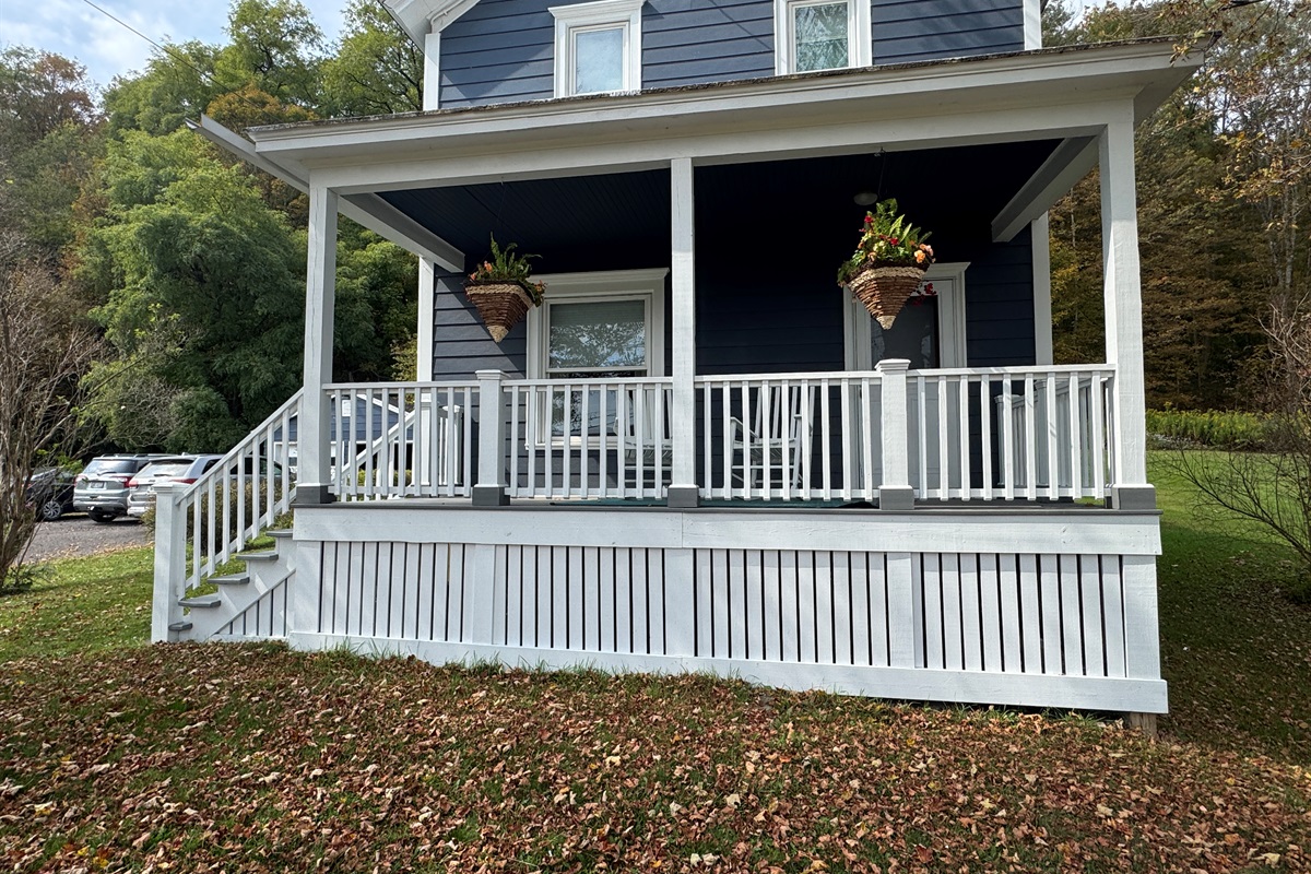 Diamond Dreams - This delightful home has been lovingly renovated, combining contemporary conveniences with vintage woodwork. There are two very large side yards. Relax on the inviting open rear deck. Your hosts provide corn hole games, or there is plenty of room to practice your fielding skills. A fire pit in the yard is perfect for family campfires. The covered front porch also has outdoor seating. This home is located very close to the Dreams park and across the road from a small shopping area with restaurants and a grocery store; and history buffs enjoy the early cemetery also across the road. There is room for ample off-street parking.
