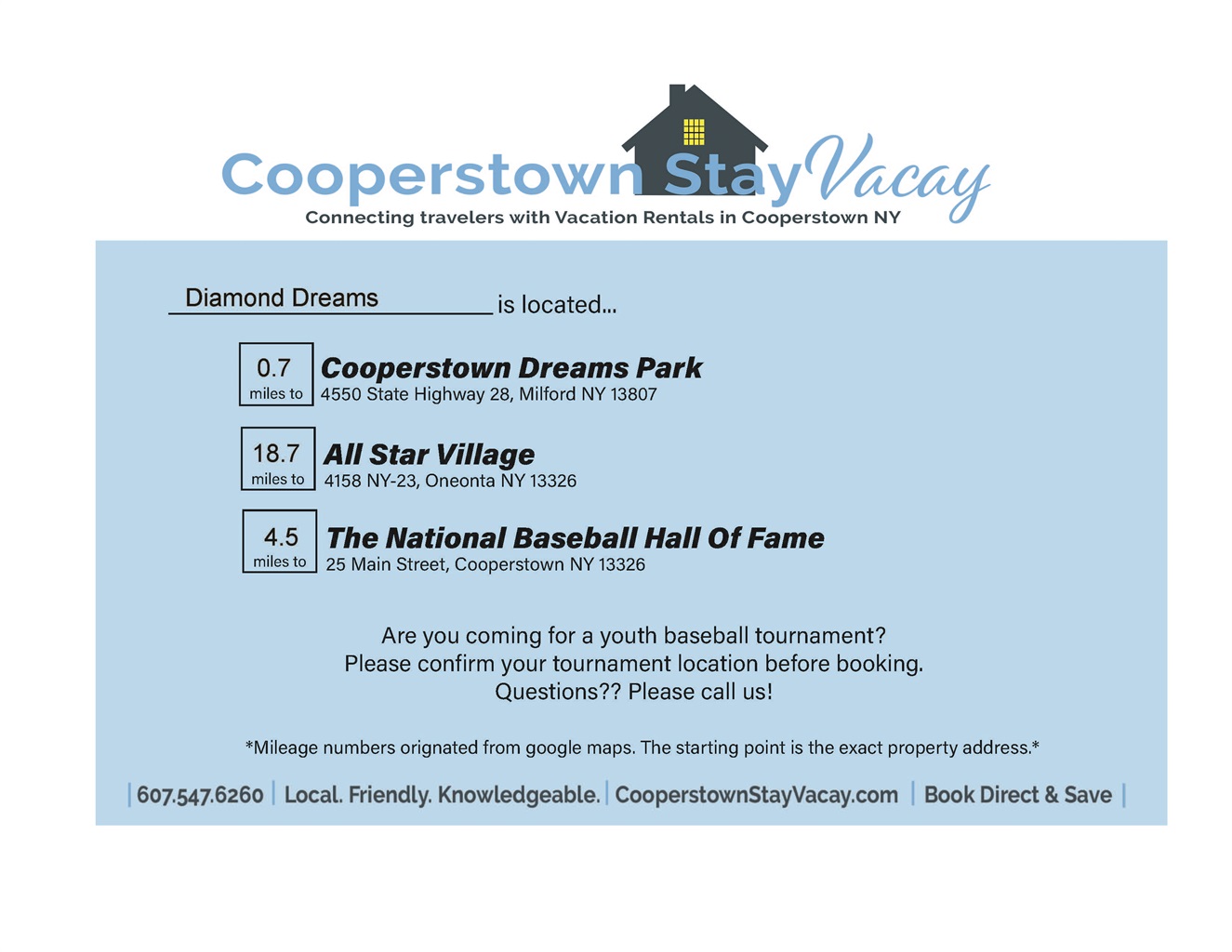 3 Bedrooms • 3 Bathrooms 3 Baths • Sleeps 5-8This Property Books on Cooperstown Dreams Park calendar only!