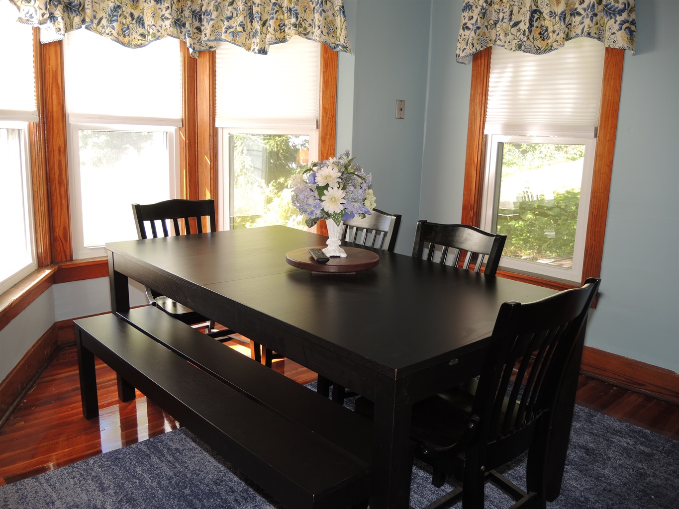 The interior combines the warm tones of original wood flooring, moldings and stairwell. Your host combines the vintage architectural features with contemporary furnishings. This creates a welcoming ambiance.