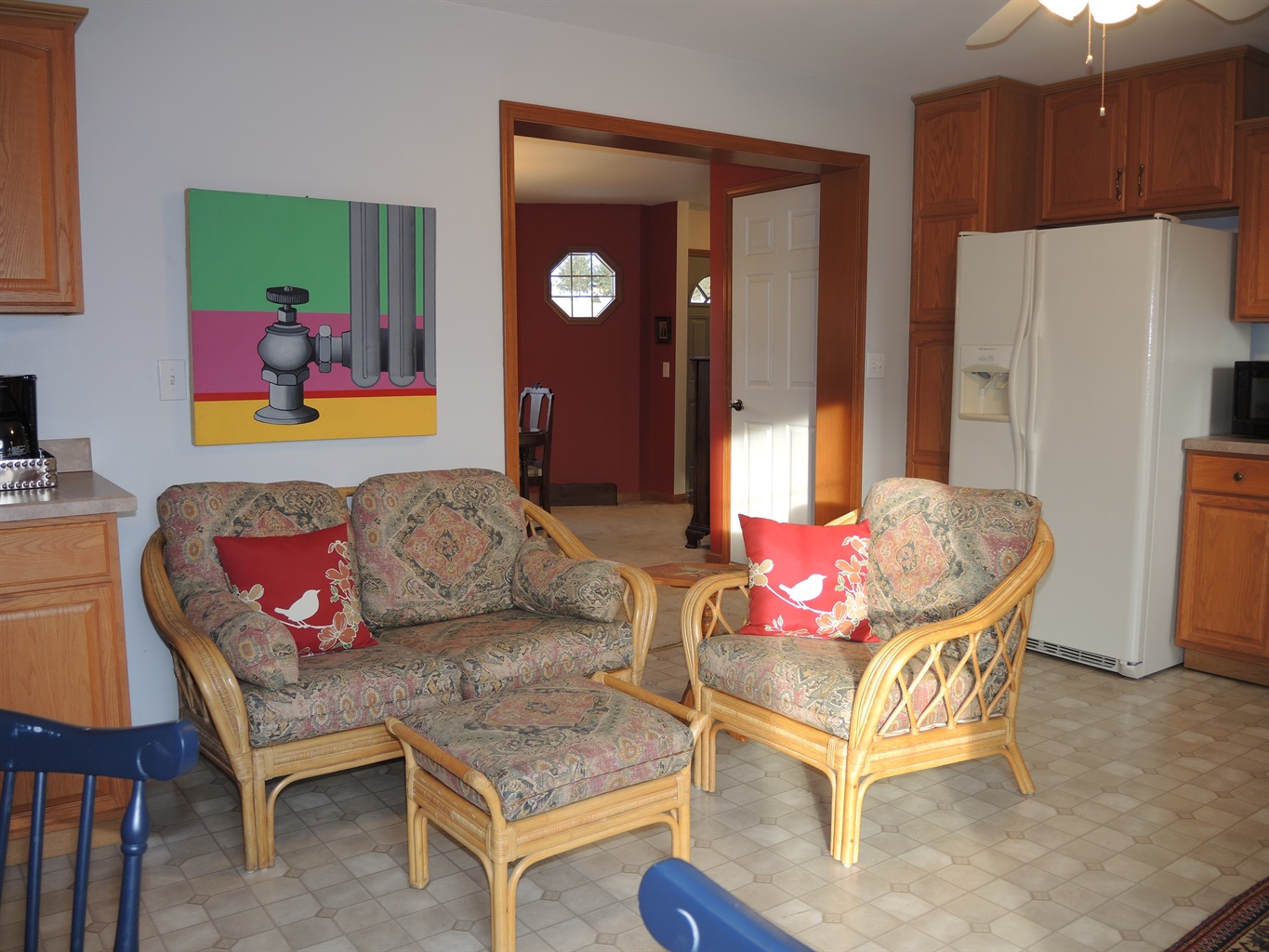 The common areas and bedrooms are all located on the first floor with an easy flow from one area to the next. Well chosen, upscale décor graces this inviting 3 bedroom / 2 bath home. Your hosts realize that families enjoy gathering in the kitchen. In the spirit of their family tradition, there is a comfortable seating and a dining area in the kitchen area. Sliding glass doors lead from the kitchen to a south facing open deck that runs along the whole back of the home