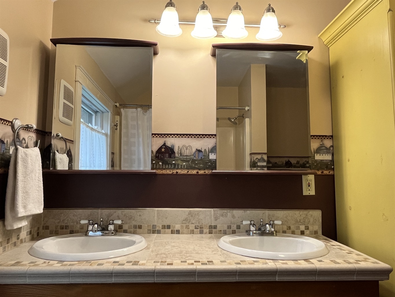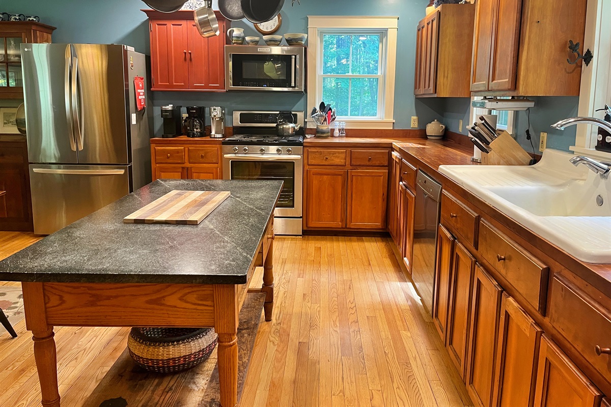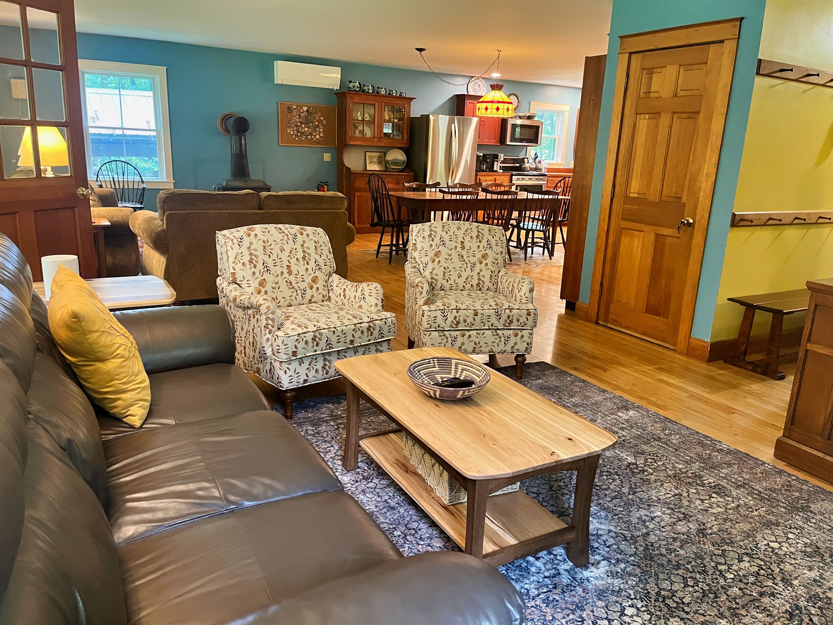 Inside you enjoy an open floor plan. The 1st floor features a beautiful kitchen featuring handmade cabinetry, dining area, living room, laundry room and recently renovated bathroom. Upstairs you'll find 5 bedrooms with TVs and 2 additional bathrooms with combo tub/shower.