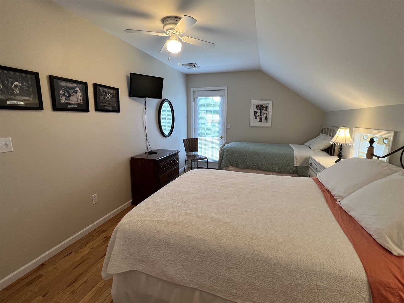 2 Bedrooms • 2 Bathrooms 2 Baths • Sleeps 4-6The Federal House Apartments are duplex style, there are two apartments each is 2 floors sharing only one wall in the center. The apartments were built new in the mid 2000's and thoughtful constructed to host rental guests. Each apartment has hardwood floors throughout an open floor plan with lots of natural light and easy access to the outside including a balcony off the bedrooms on the second floor. Each apartment is private and has 2 bedrooms, 2 bathrooms. The back deck and laundry room are shared only amongst the 2 apartments. The apartments are offer for rent individually. The Federal House main house has an in-ground pool shared with all three units during the summer months only. The pool is open from memorial day - labor day.