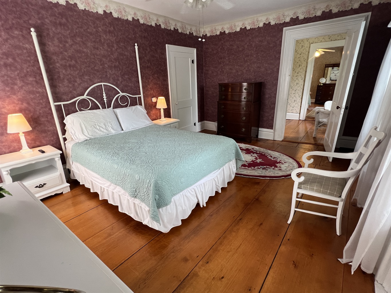 5 Bedrooms • 3 Bathrooms 3 Baths • Sleeps 8-12The Federal House is a historic, 5-bedroom, two-story home built in 1814. It was remodeled in 2003, adding modern amenities such as central air conditioning and a large in ground swimming pool. This entertainment-oriented home sits on over 5 acres of land and features a updated country kitchen, dining room with table for 12, living room, game room, pool and patio. There are 5 bedrooms in the Main Federal House including a 1st floor primary suite with full bathroom. Original features such as tall ceilings and extra wide hardwood plank floors are still evident throughout the house.