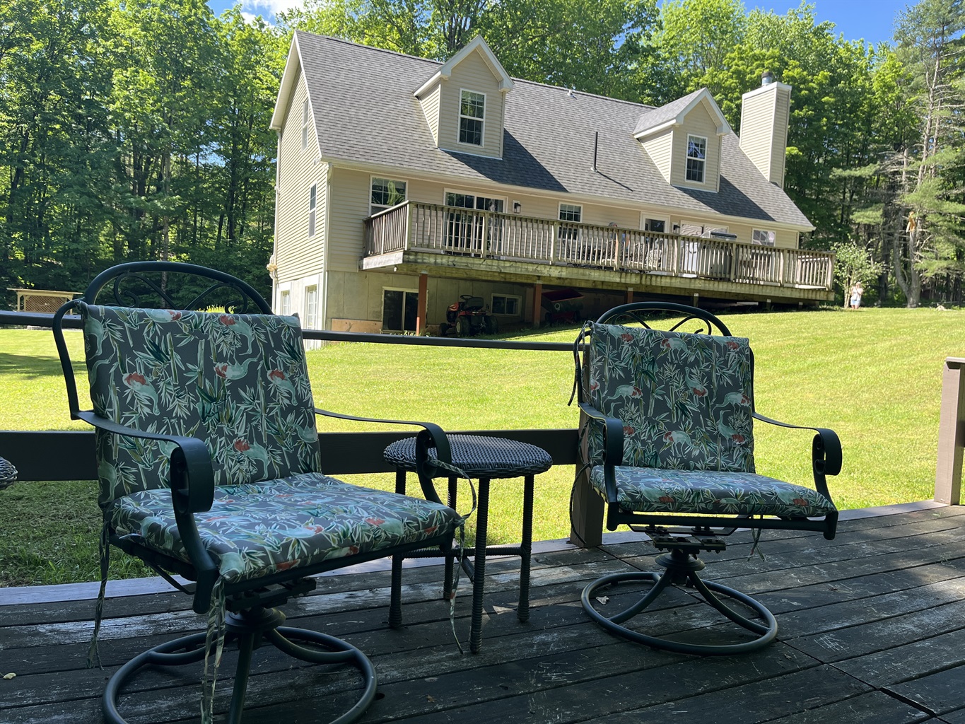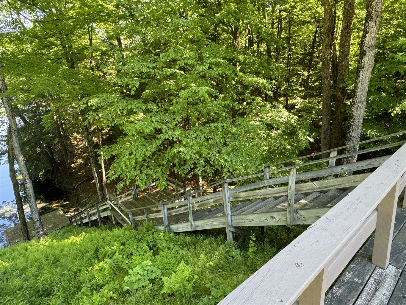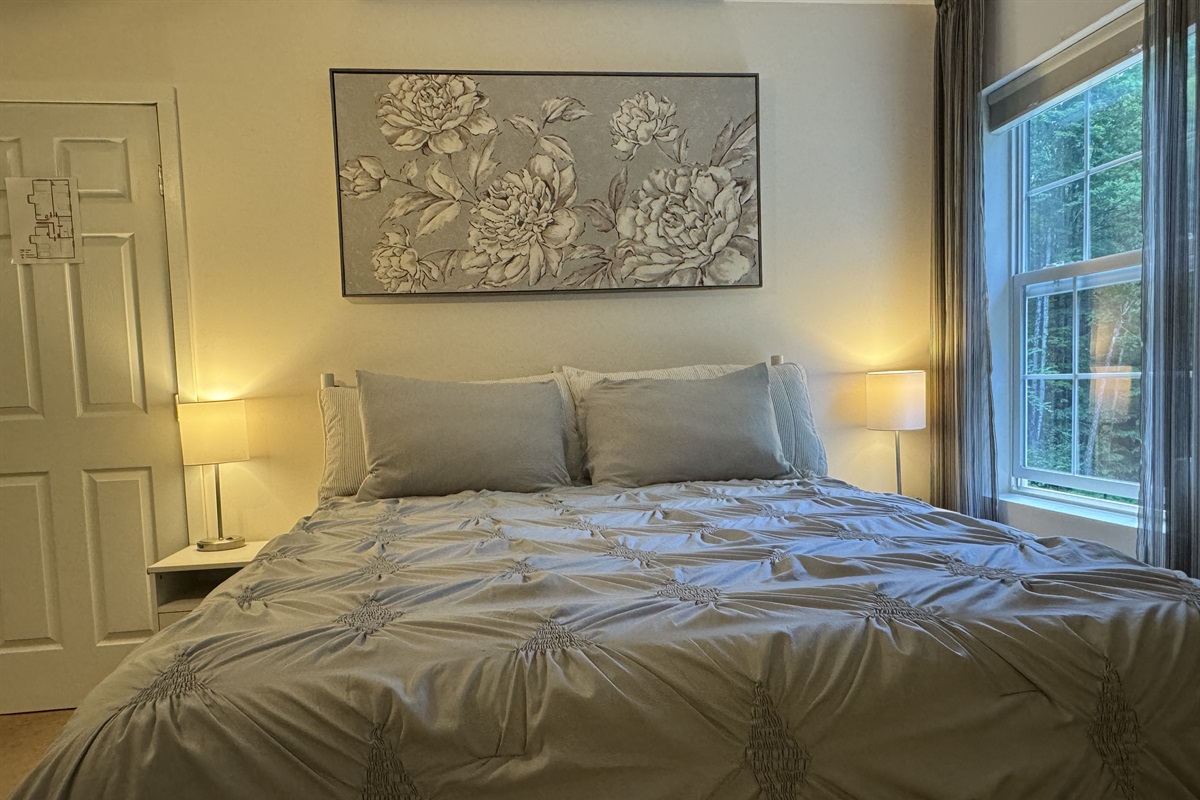 The 2nd floor has 3 bedrooms with different bedding configurations for your groups needs. A Queen room, the 'upstairs suite', a room with a Queen and 2 twins, the 'family suite, and the kids favorite, a room with 2 Double beds, the 'jungle room'! There is a shared hallway bathroom with tub shower on the 2nd floor as well. Each room has its own SmartTV, and the 'upstairs suite" and the 'family suite' each have a desk space overlooking the water for those who must WFH during their stay.