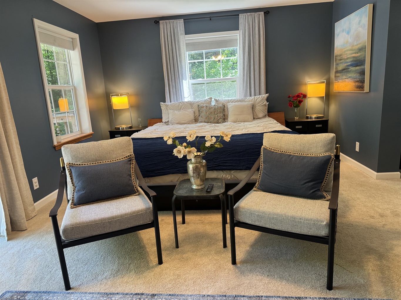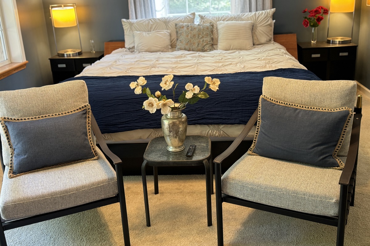 Inside the home you will be greeted by your hosts excellent taste in art and decor. Goodyear Lakehouse feels more like a showroom and less like a vacation rental. Unique lighting throughout, bold statement art pieces, beautiful paint colors and thoughtful furniture choices make this home truly great.