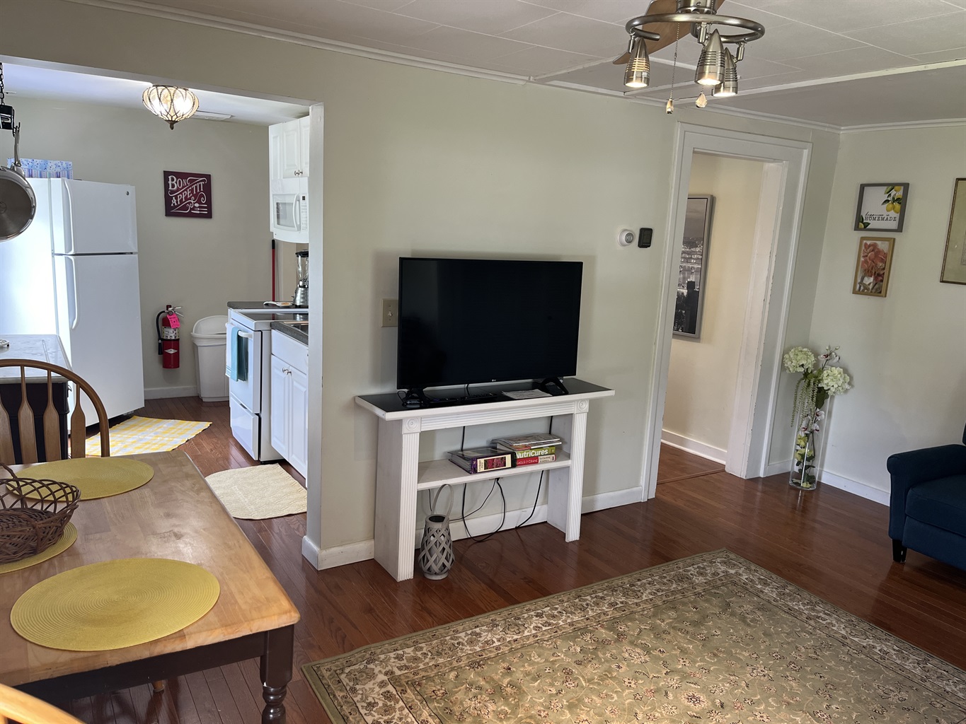 Goose Pond Two - This recently remodeled apartment is less than a mile from All Star Village. Baseball tournament families really enjoy the convenience. It is located on the second floor and has outdoor dining on a balcony overlooking the goose pond. This one bedroom, one bath apartment has a contemporary décor with a spacious living / dining area and a galley kitchen. Enjoy all of the conveniences of home with this fully equipped kitchen. It will comfortably sleep 2 - 3 people.