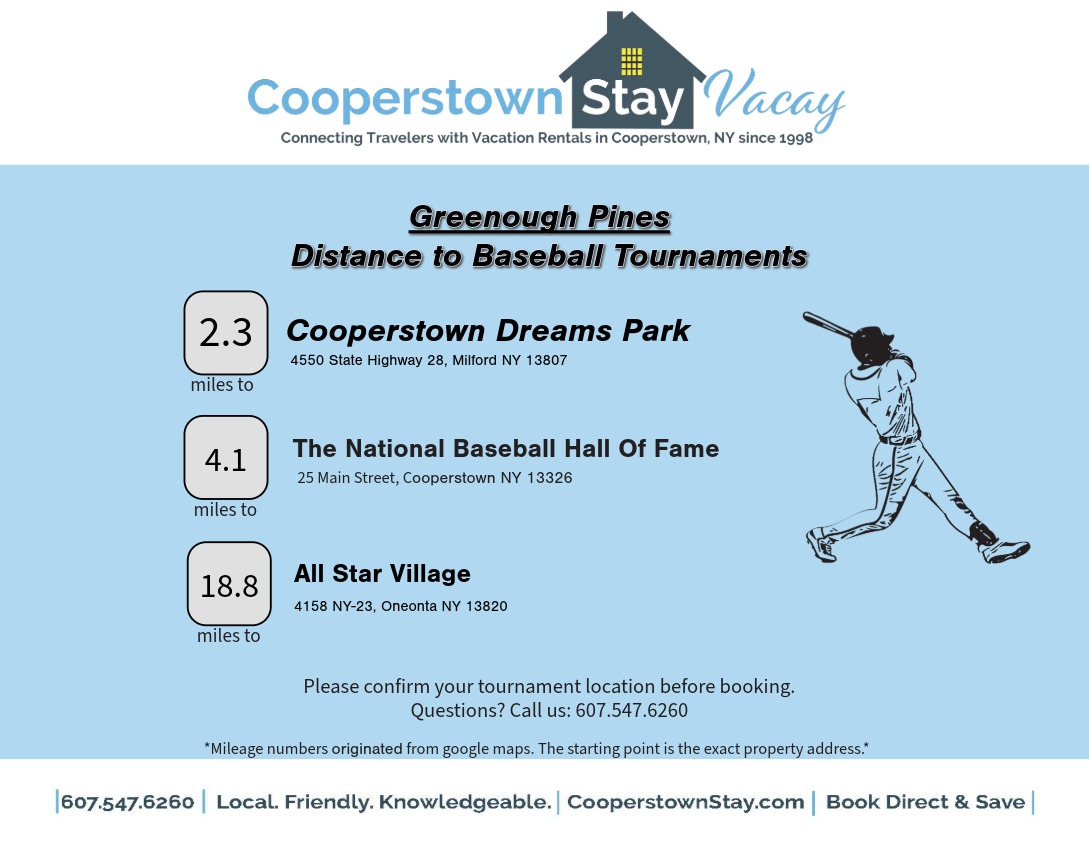 * Just 8 minutes from Cooperstown Dreams Park so you are on time for every first-pitch