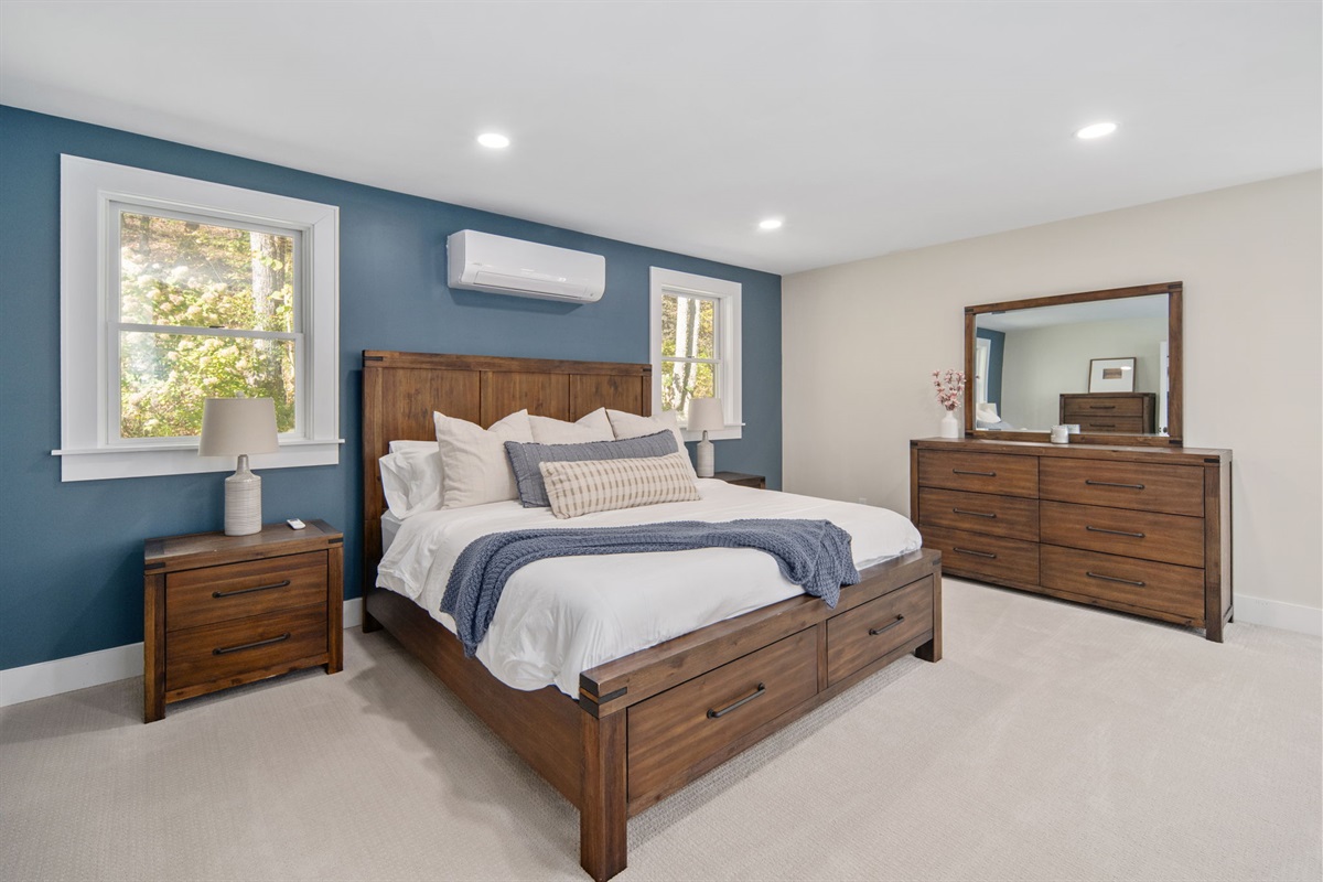 * Primary Suite (Upstairs): King bed and large walk-in closet for a spacious retreat.