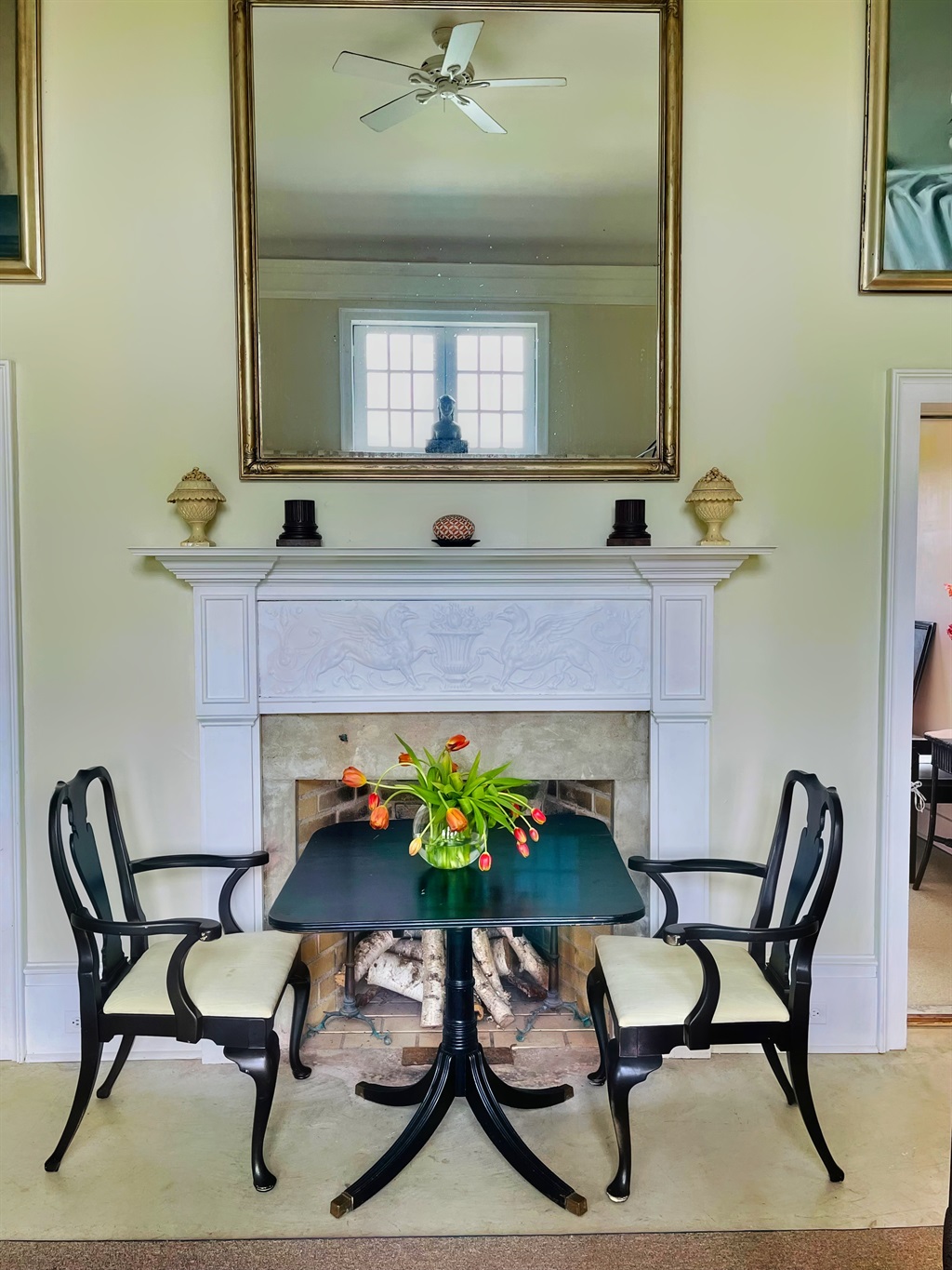 The Kitchen is fully equipped with everything you need to make a meal, all you need to do is bring the food! The bar sitting in the kitchen has a fantastic view of the lush green rolling hills, you can see for miles. Enjoy outside dining and sitting on the private side patio which you can access from the exterior door in the kitchen. A gas grill, a table and chairs are perfectly placed on the patio for guests to enjoy the outdoors and the view.