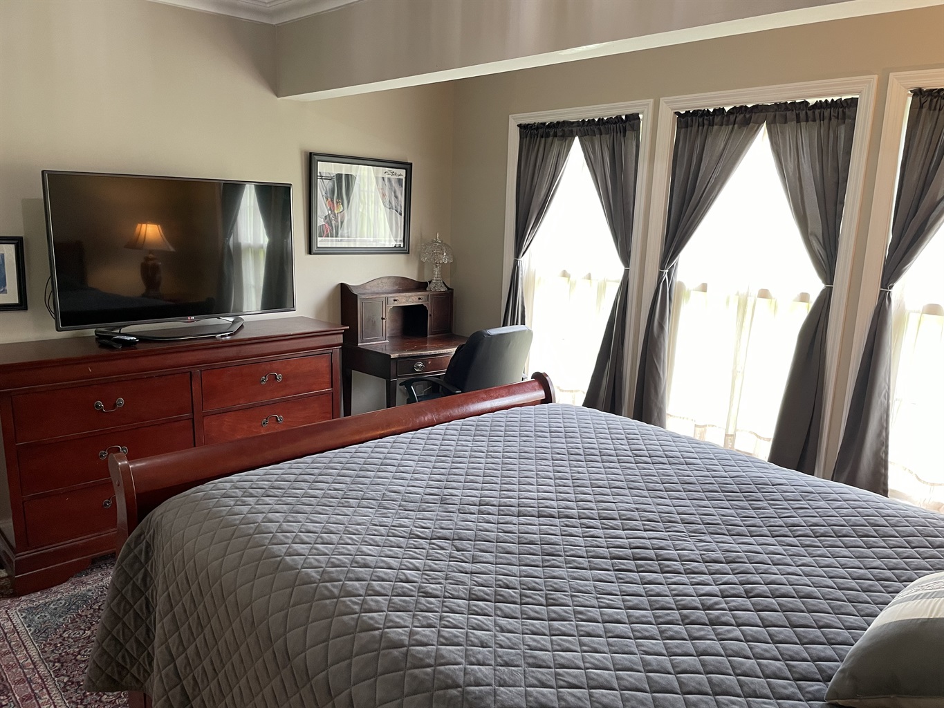 This 5000-square-foot home has a spacious living room with an easy flow from living to kitchen and dining. There is one queen bedroom and one bath on the first floor. The second floor features 4 bedrooms, including a master king bedroom with bath ensuite , a queen bedroom with bath en suite and two more queen bedrooms and a 4th bath off the hallway.