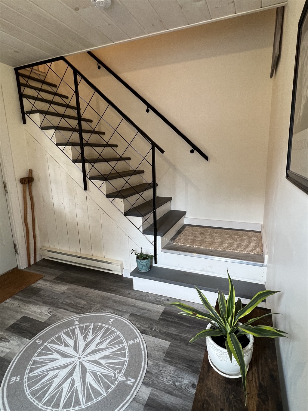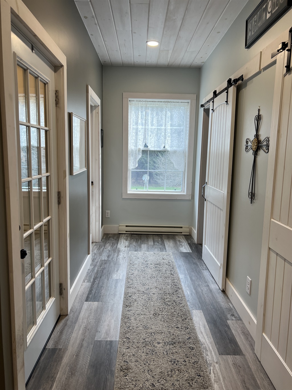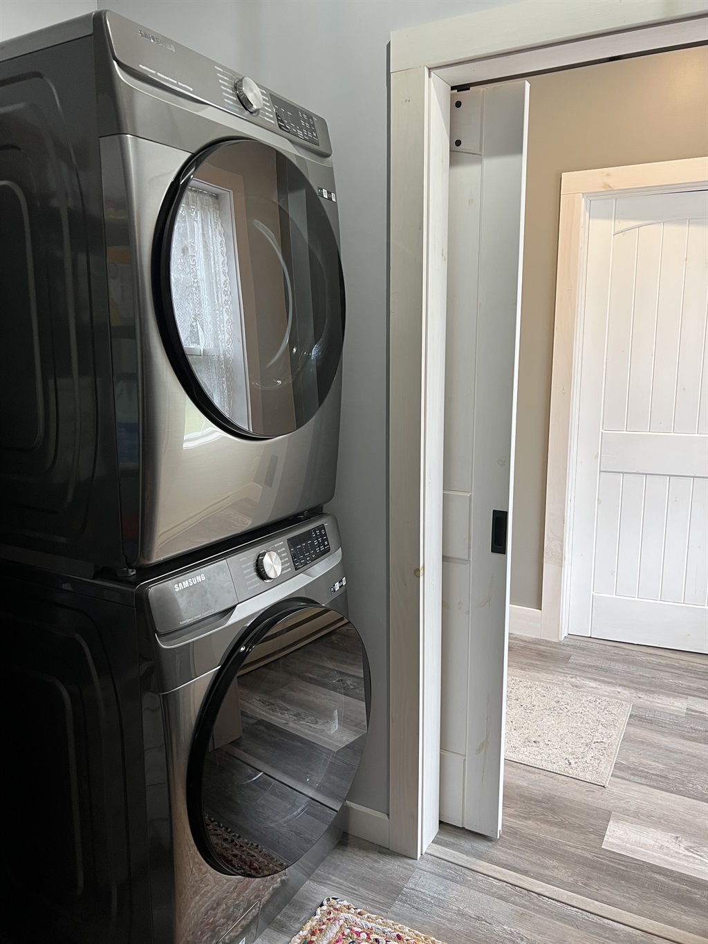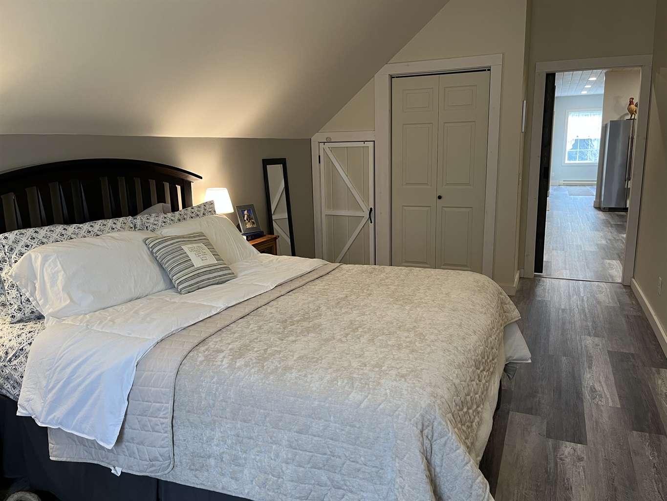Horse Haven is a newly built 2nd-floor apartment located over the barn. The contemporary styling and open layout of this apartment make you feel right a home. All on one floor you have everything you need to enjoy your stay. There are 2 large bedrooms with queen beds. The main area enjoys an ideal open layout. The kitchen, living room, and dining room are all in one large open space making it easy to spend time together. There is a super cool cupola in the center of the room letting in lots of beautiful natural light. The bathroom is located in the hallway close to the main entrance. The bathroom is very spacious and spa-like with glass tile to the ceiling in the tub surround. There is a laundry room and pantry area just past the bathroom.
