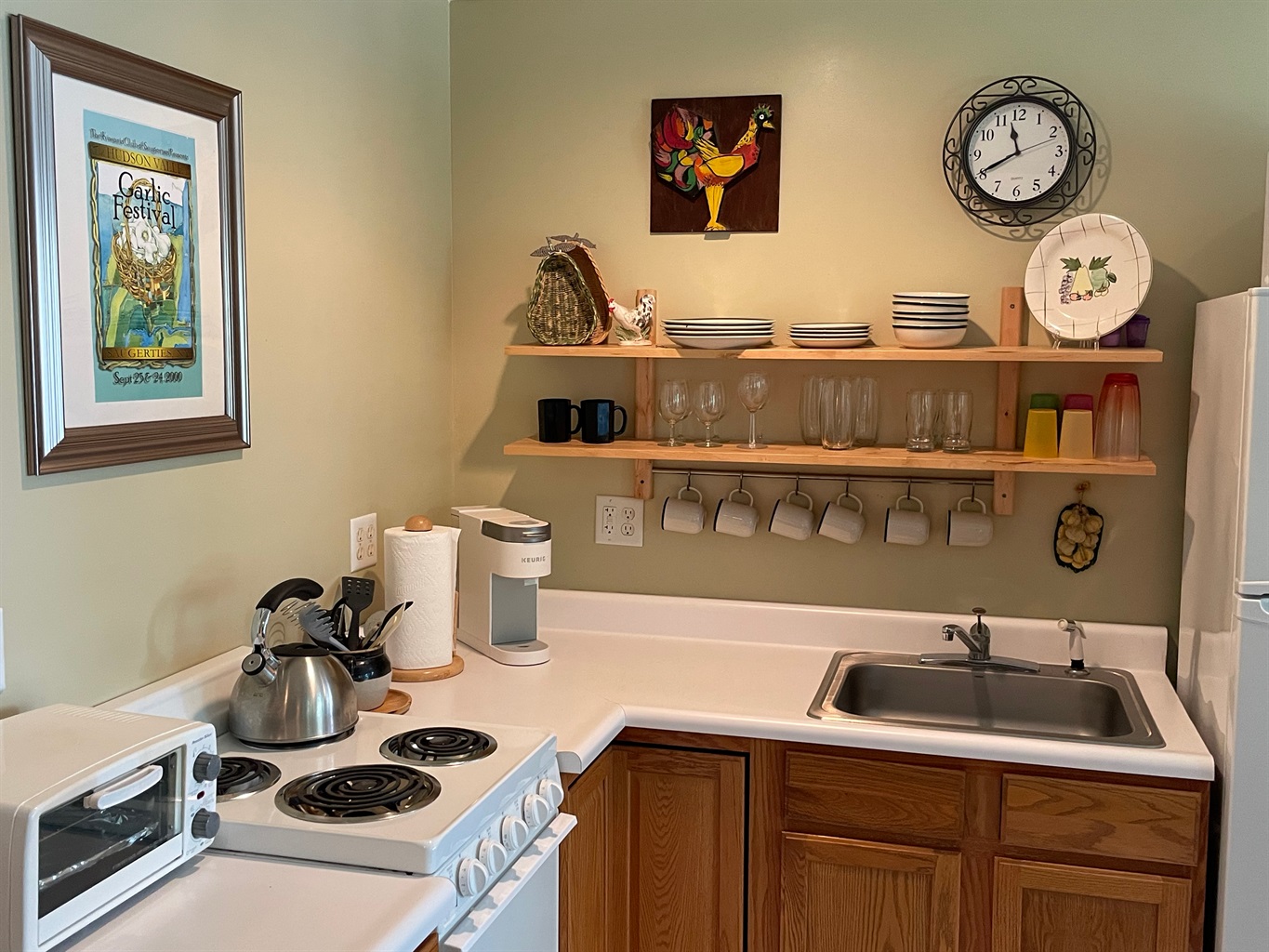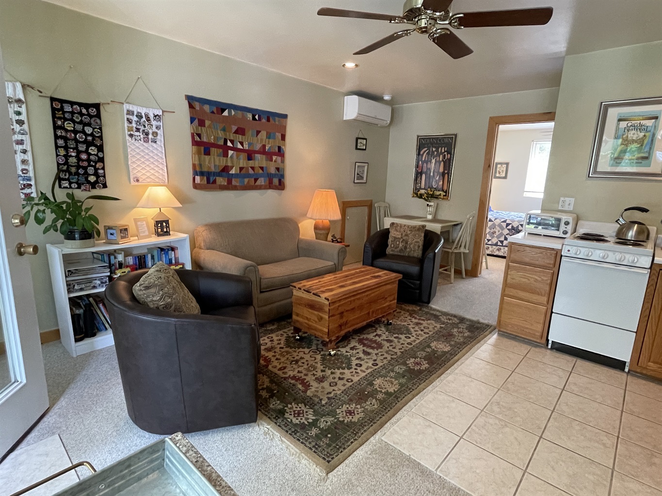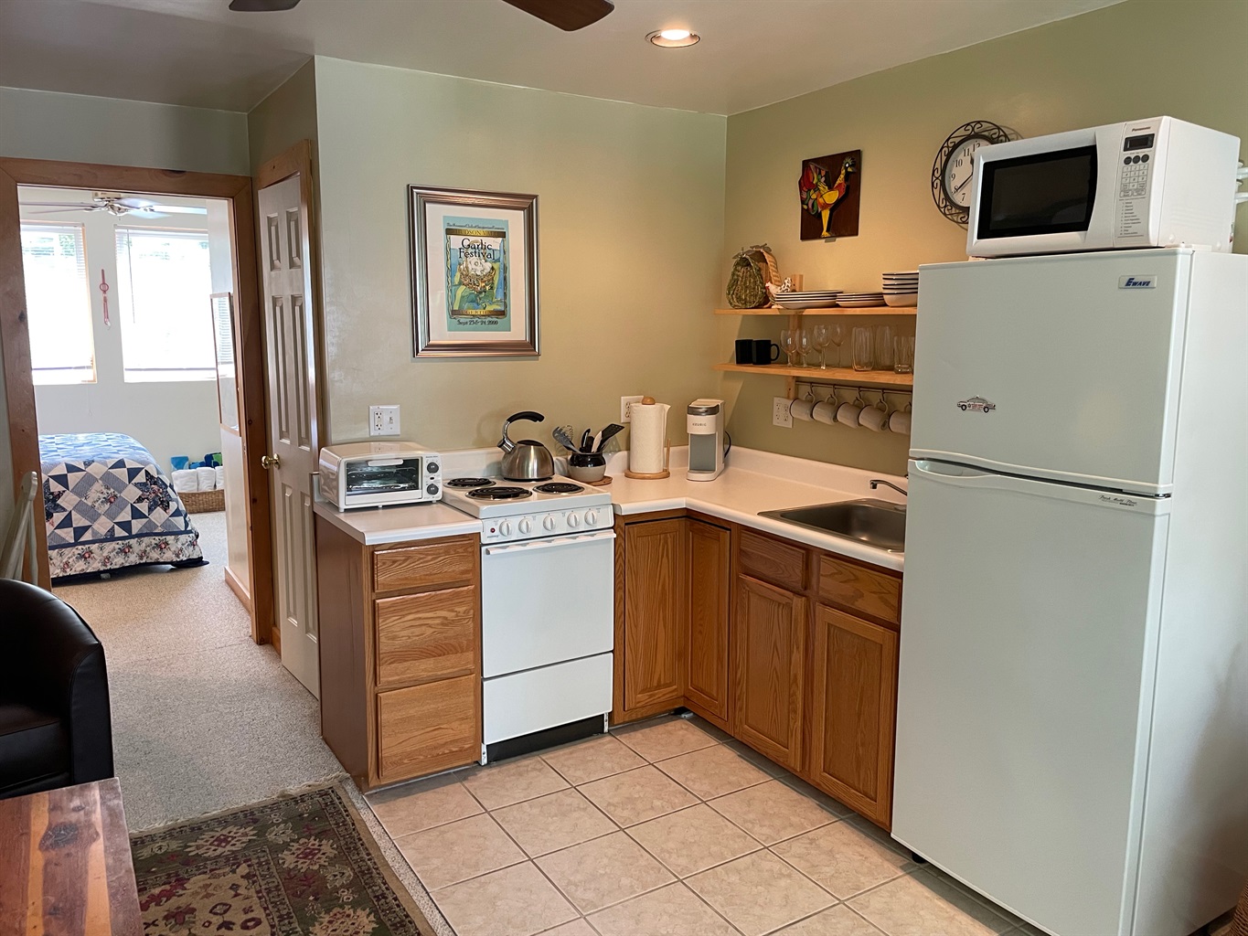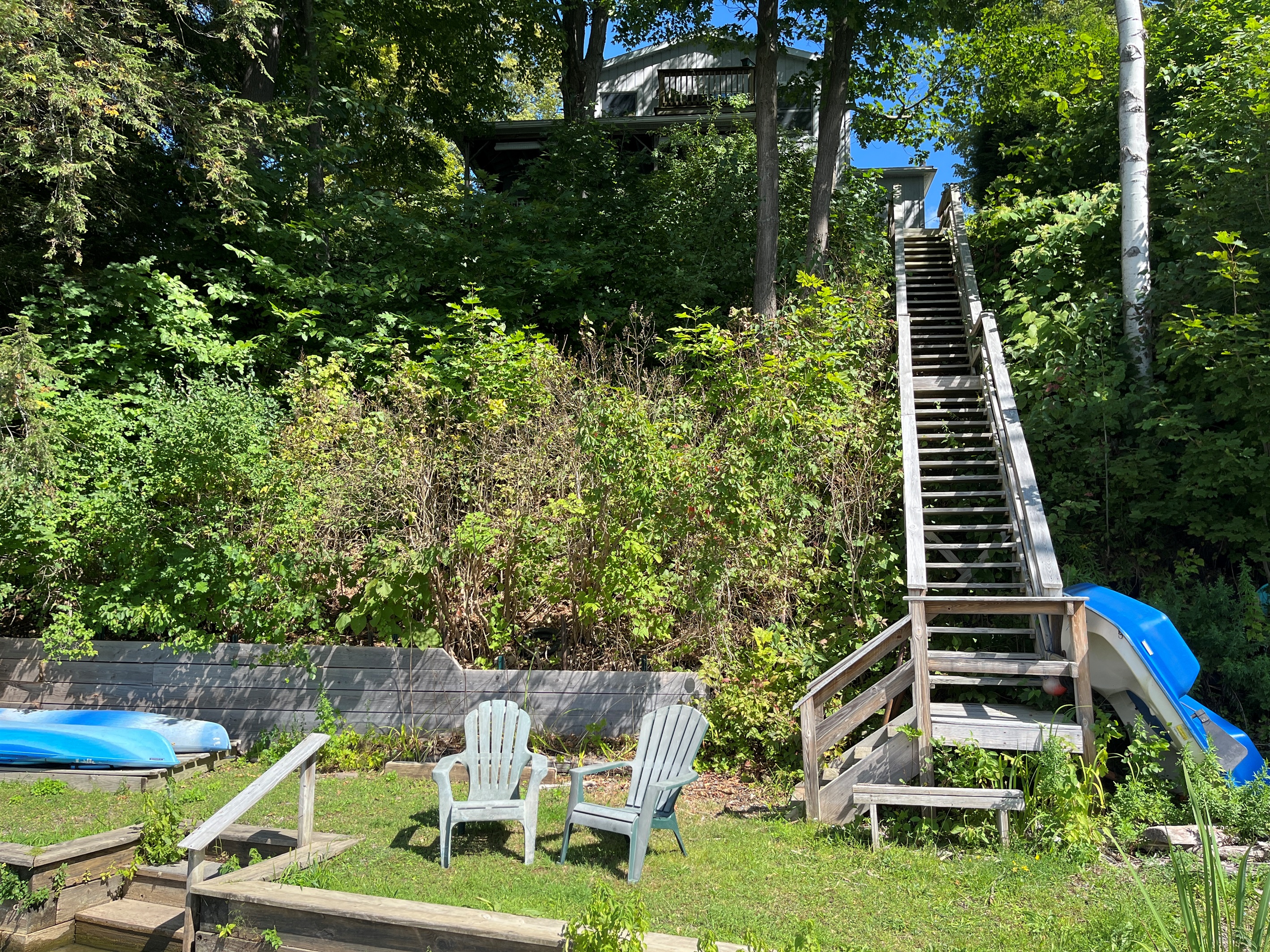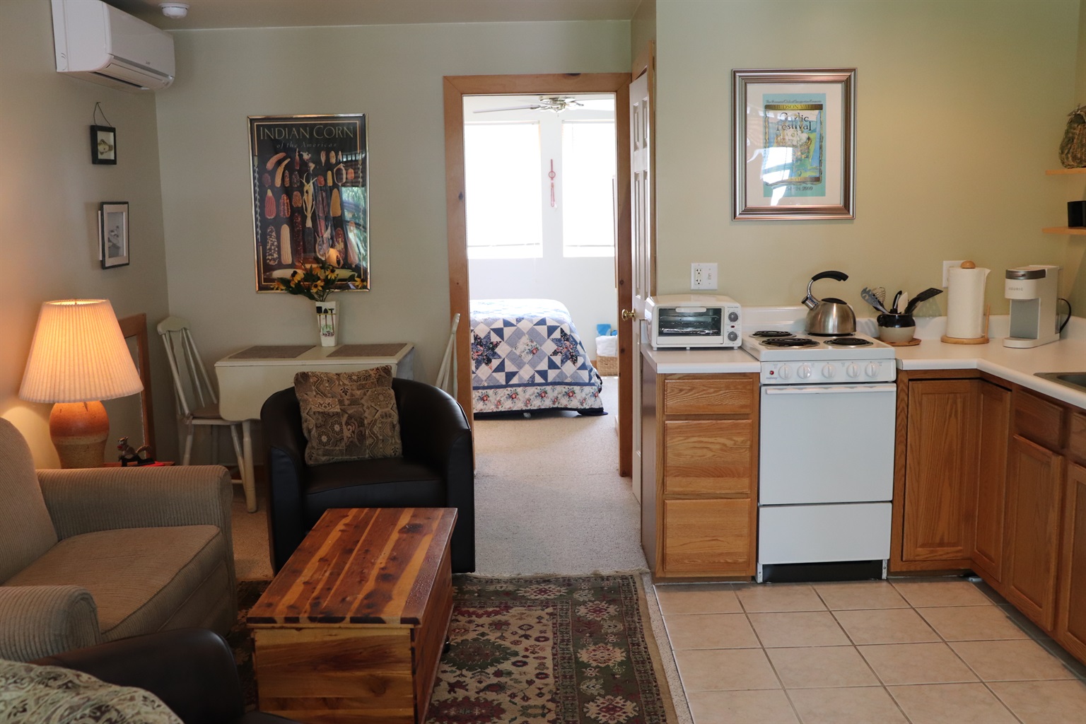 1 Bedroom • 1 Bathroom 1 Bath • Sleeps 3Lakeview Cottage - GOODYEAR LAKE - Completed in 2003, this quaint cottage has a charming décor and is perfect for a small group up to 3 people. Located on the 2nd floor of a small barn-style garage, this property has all you need. Take advantage of all the beauty Goodyear Lake has to offer as you relax, swim, boat and fish. Enjoy morning coffee on the private balcony with pleasant lake views through the trees or on the patio below while enjoying the lush gardens meticulously maintained by your host.