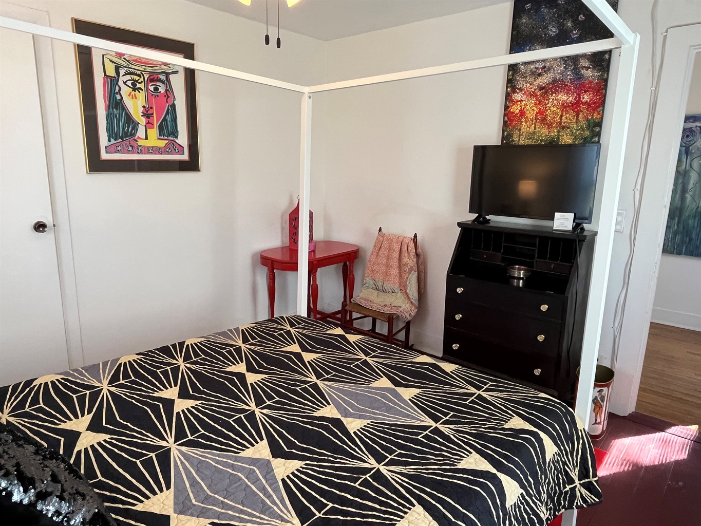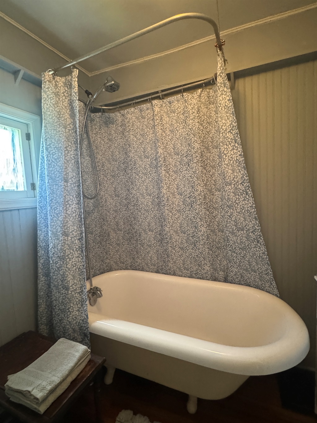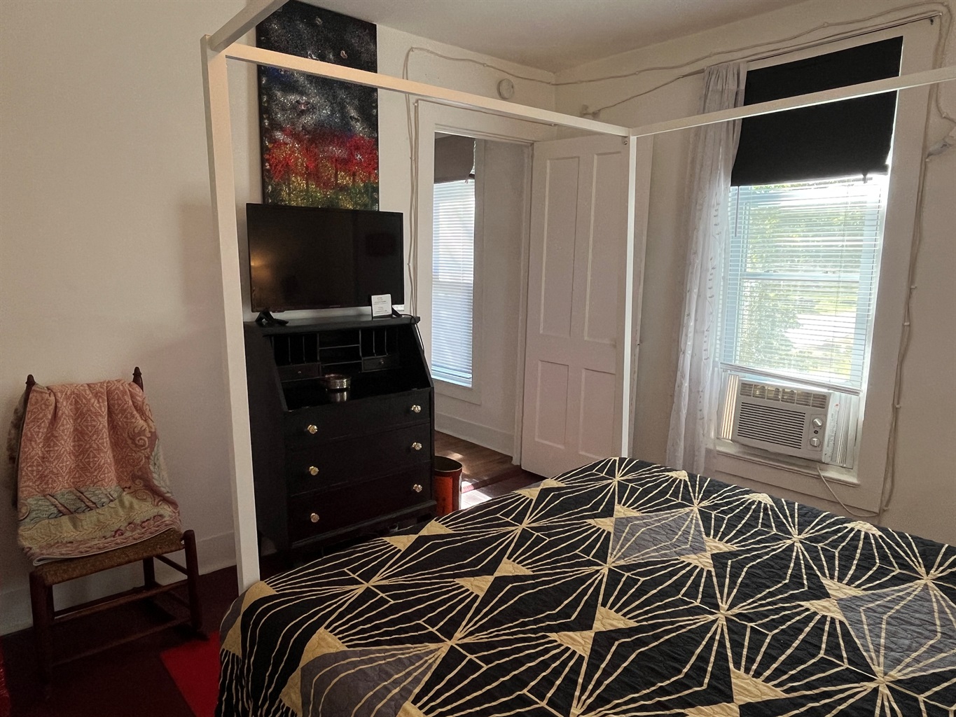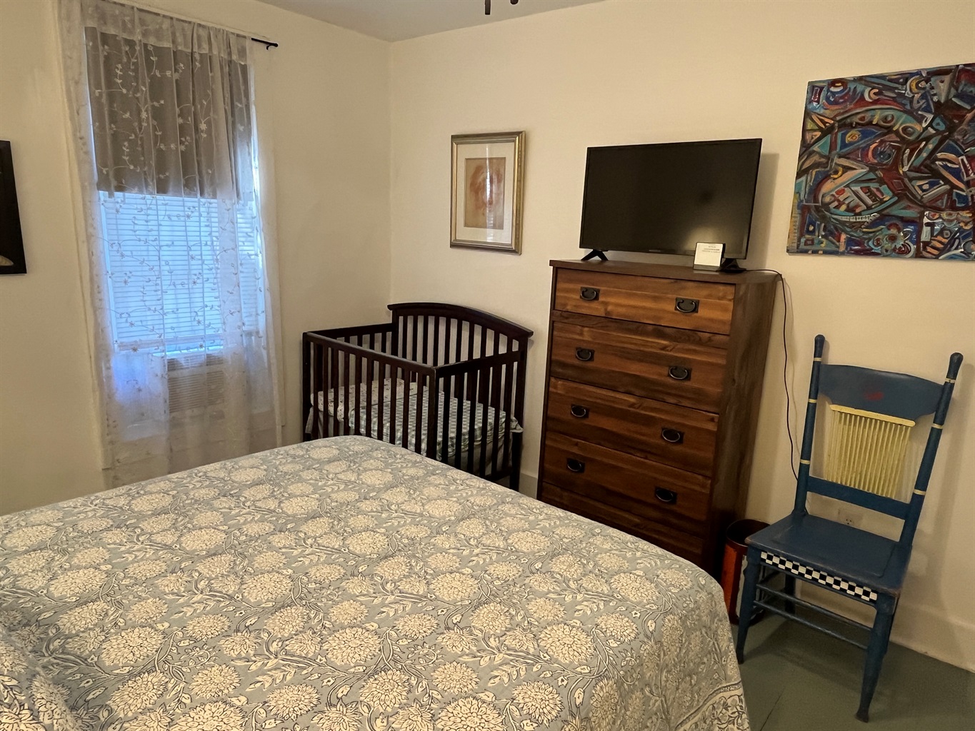The four bedrooms offer ample space for relaxation and creativity, with each room showcasing its own distinctive style. There are 3 room with Queen beds and the 4th has a pair of twins. There is a full bath with a shower on each floor. The 1st-floor bath is off the kitchen and has a laundry room inside. The 2nd-floor bathroom has a clawfoot tub with a shower located off the main center hallway.