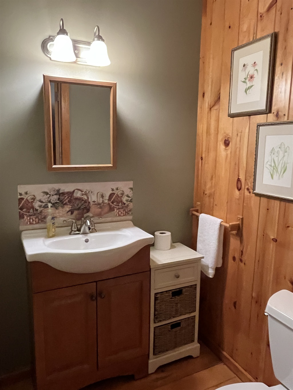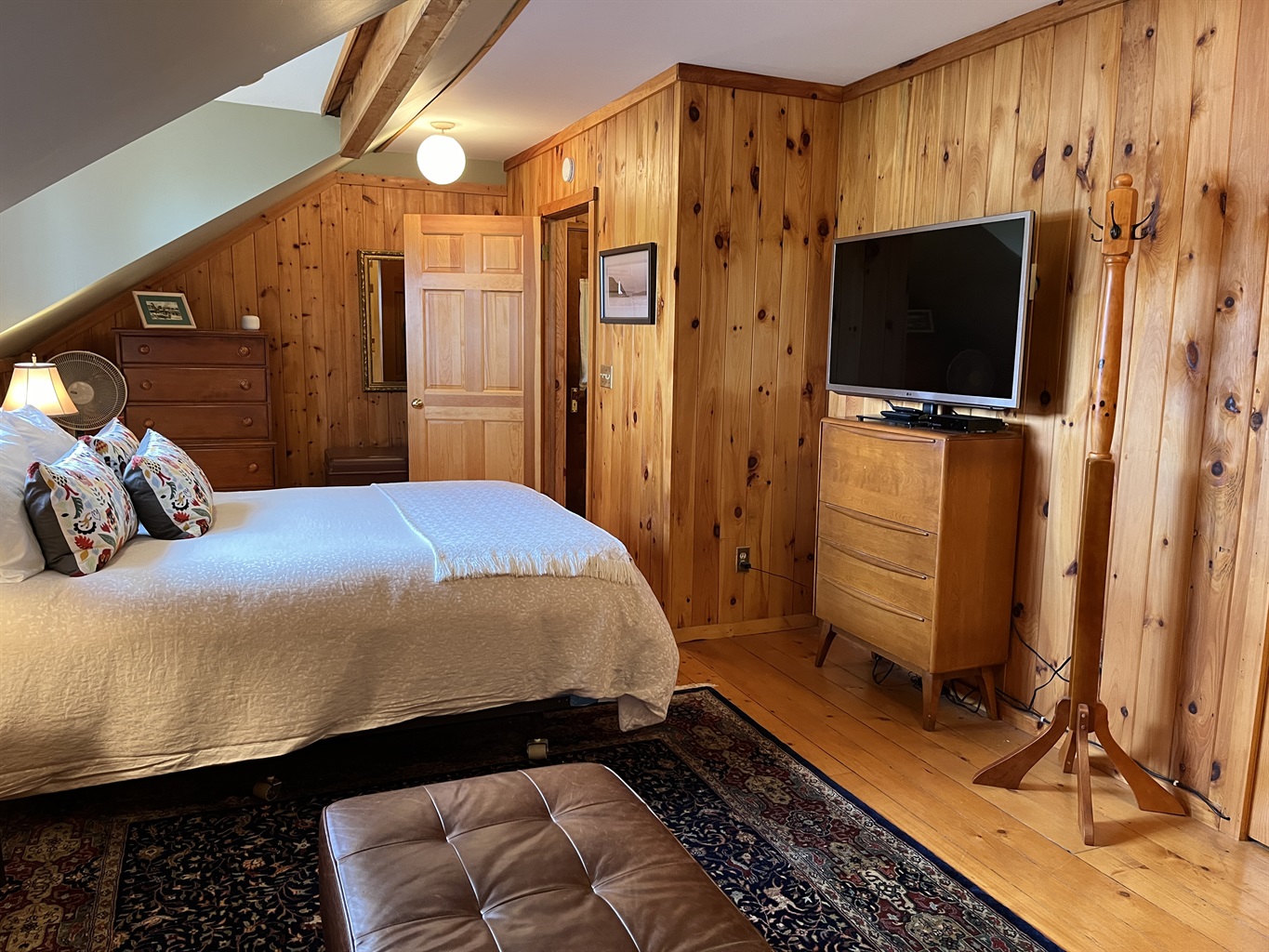 The 2nd floor has three bedrooms, the primary bedroom has a half bathroom en-suite for convenience. The views of the lake are just over the head of the bed, you can see all the way up to the north end of the lake. There is a smart TV and AC in the primary bedroom as well. The 2nd bedroom is a double bed and the 3rd bedroom has 2 twin beds a TV and AC perfect for the kiddos.