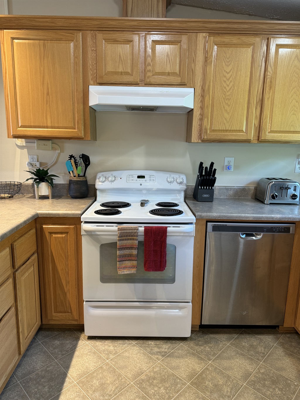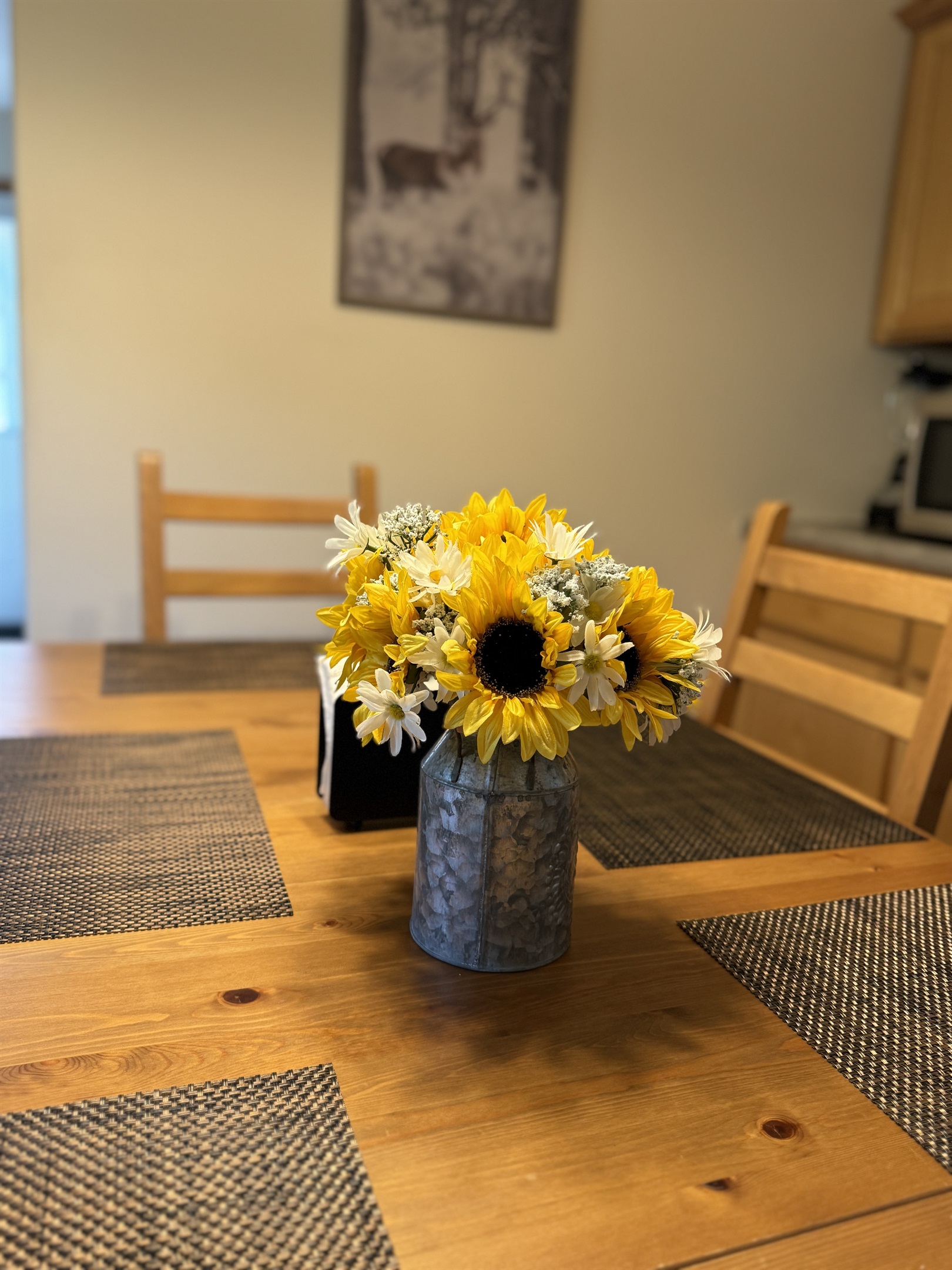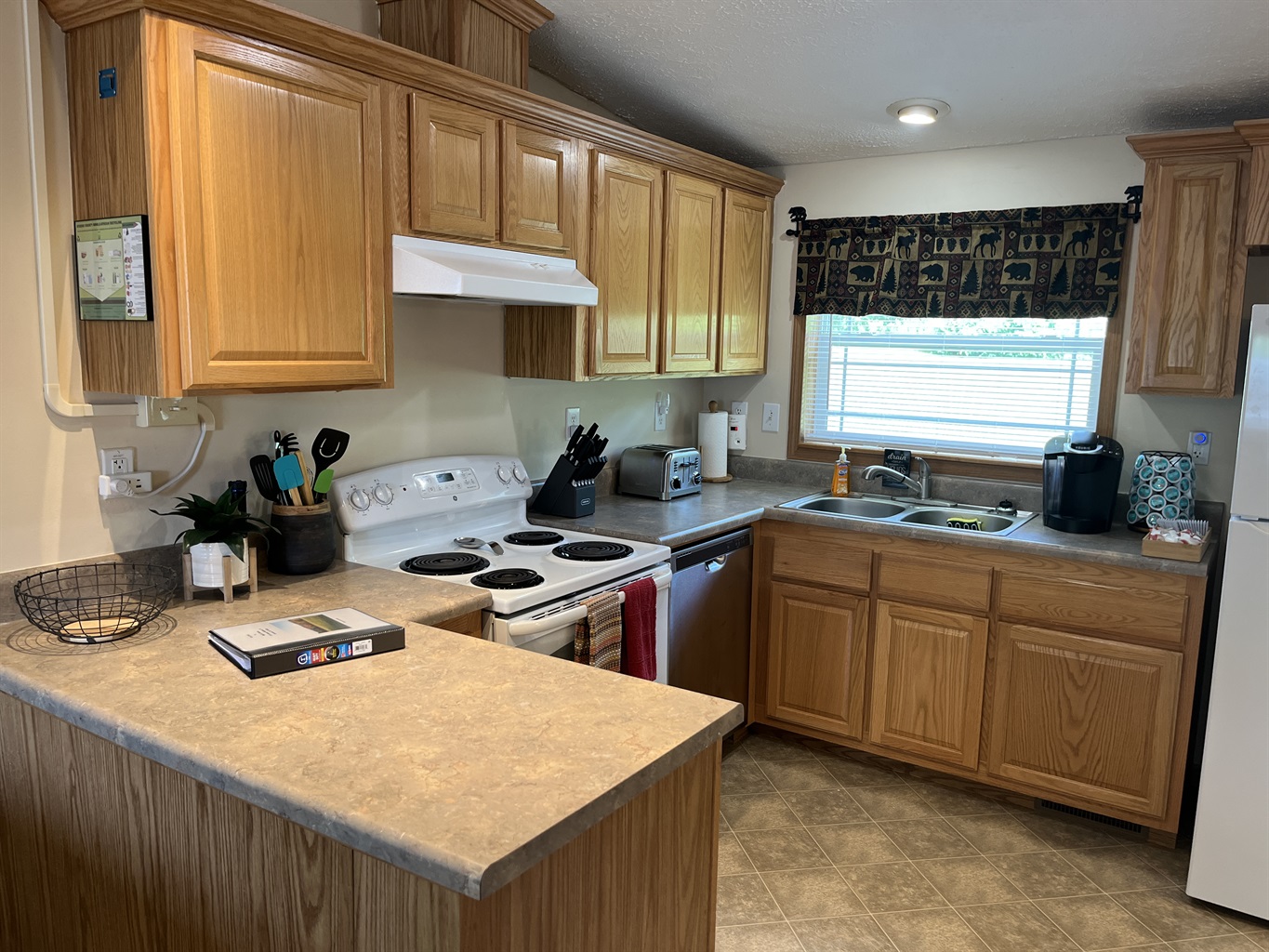 This lovely country home is a perfect option for a small group. It features an open living, kitchen, and dining area which allows guests to remain together even if in different areas. The kids can watch a game while others prepare a meal in the kitchen. Enjoy a cup of coffee on the front deck while others remain snuggled on the living room couch as the morning gets started. There is a 50" Smart TV in the living for your enjoyment. The kitchen is well stocked with all the kitchen gadgets, gizmos, and utensils you could need while on vacation. Once the meal is made there is plenty of room in the dining area or you can enjoy the sights and sounds of nature with a meal outside on the new side porch.