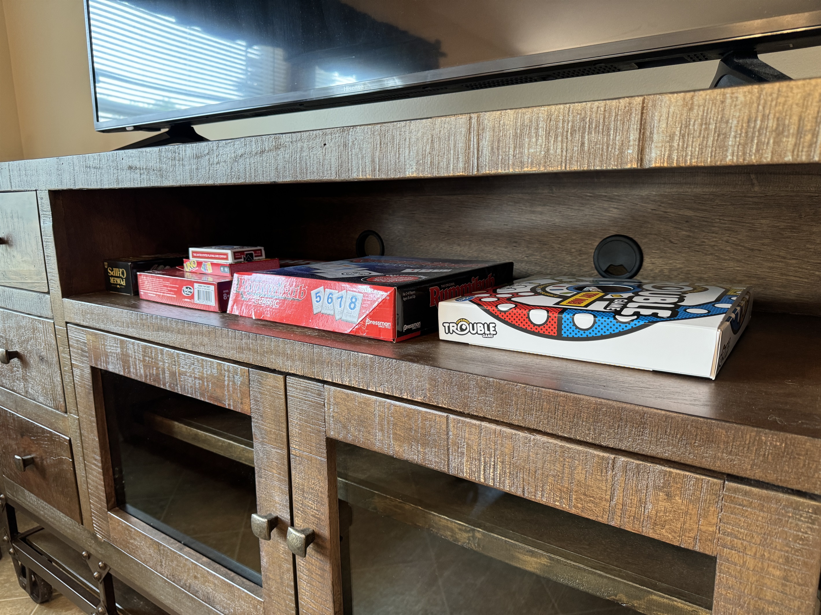 The large primary bedroom has a queen bed and 43" Smart TV as well as an ensuite bath. This bathroom has a large soaking tub and separate shower and can also be accessed from the other side, just off the laundry room. On the other end of the house, there are 2 additional bedrooms. One Queen bedroom with a 43" Smart TV and the other bedroom has a set of 2 twin beds, perfect for kiddos.
