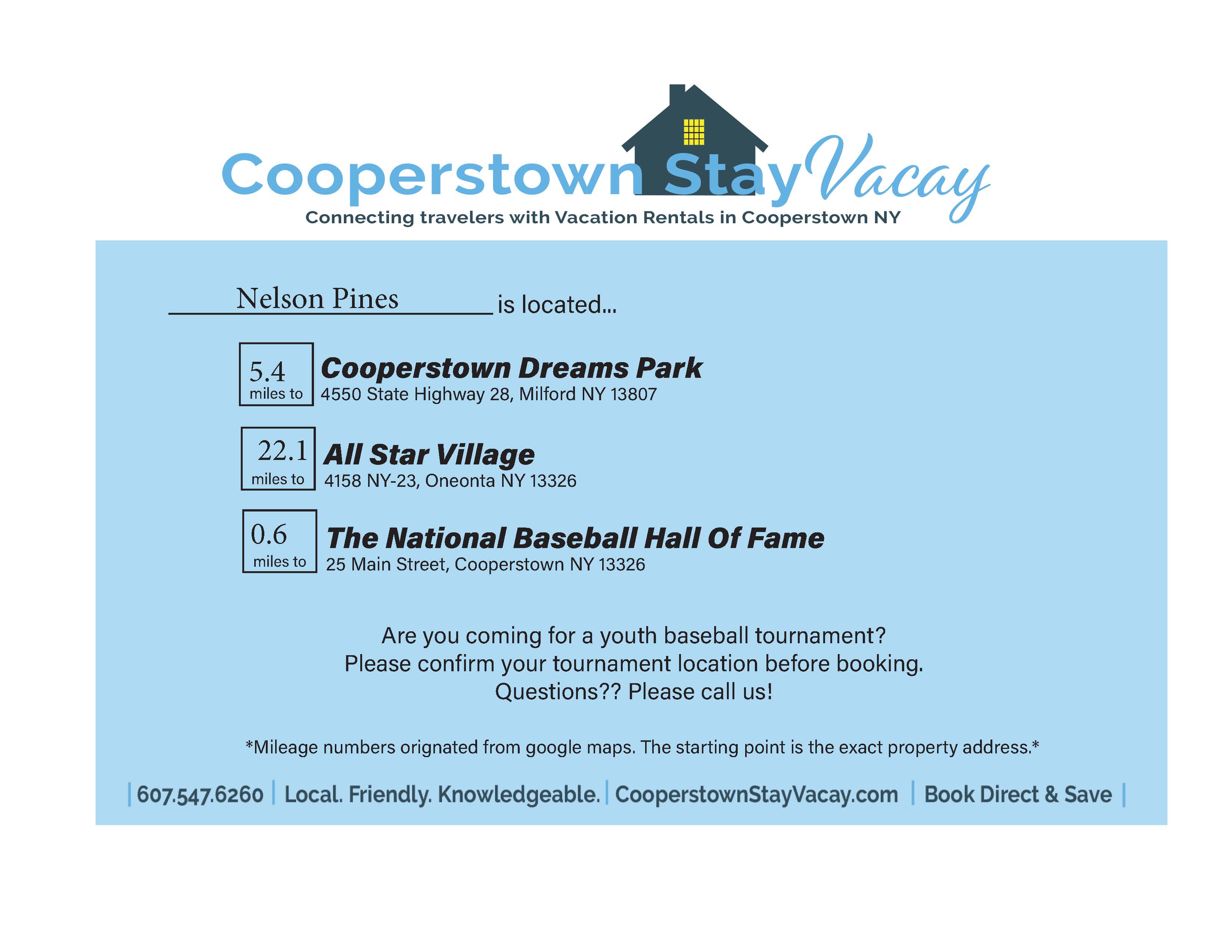 Nelson Pines - This private room is very conveniently located in the heart of Cooperstown, in a peaceful, quiet residential area. It is just one block from Main Street shops & restaurants, as well as the Baseball Hall of Fame. It is also located just across from the Otesaga Hotel and Leatherstocking Golf Course
