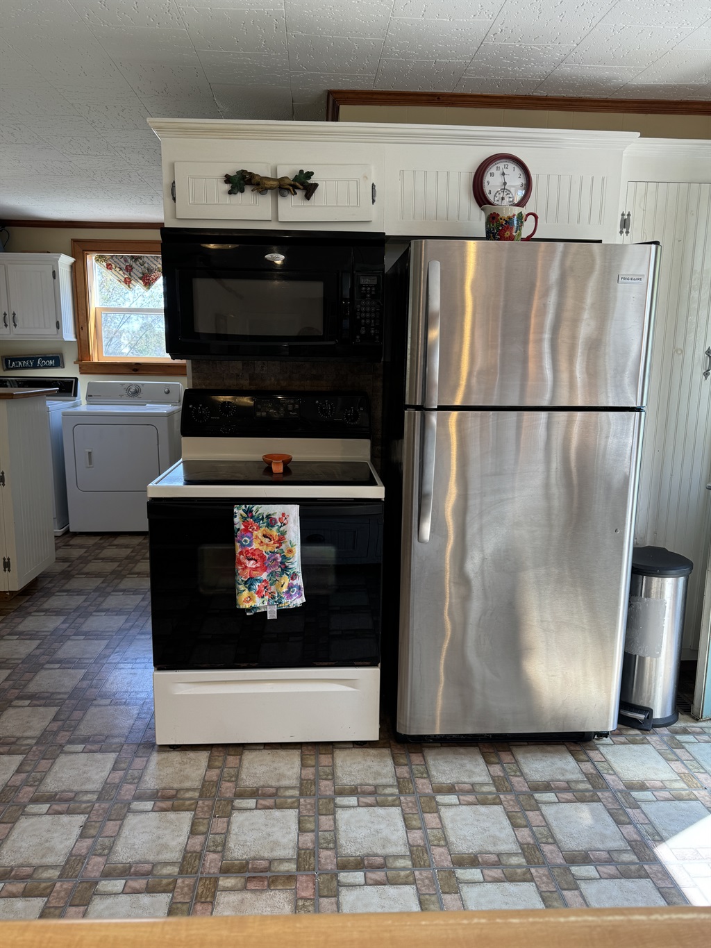 There is a wonderful open layout between the kitchen, dining and living room all filled with lots of natural light form the numerous windows on the backside of the house. Everything is on one level, the queen bedroom is located just off the living room. The primary king bedroom is in the back corner of the house and the twins room in off the hallway. The laundry area and full bathroom are located to the right of the kitchen. There is a large smart ROKU TV in the living room as well as TV's in the primary bedroom and the twin bedroom all with high speed internet.