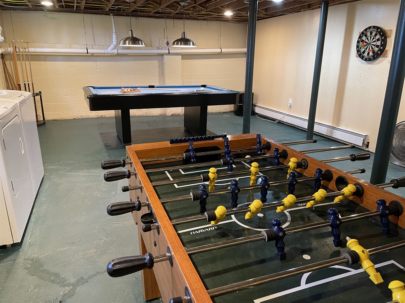 The interior of this 3000 square foot home has an open floor plan with a spacious living area that flows into a dining area and into the efficient kitchen. There are wooden and tile floors throughout. Your host provides a Wii game system in the game room, as well as darts, Foosball and a pool table.