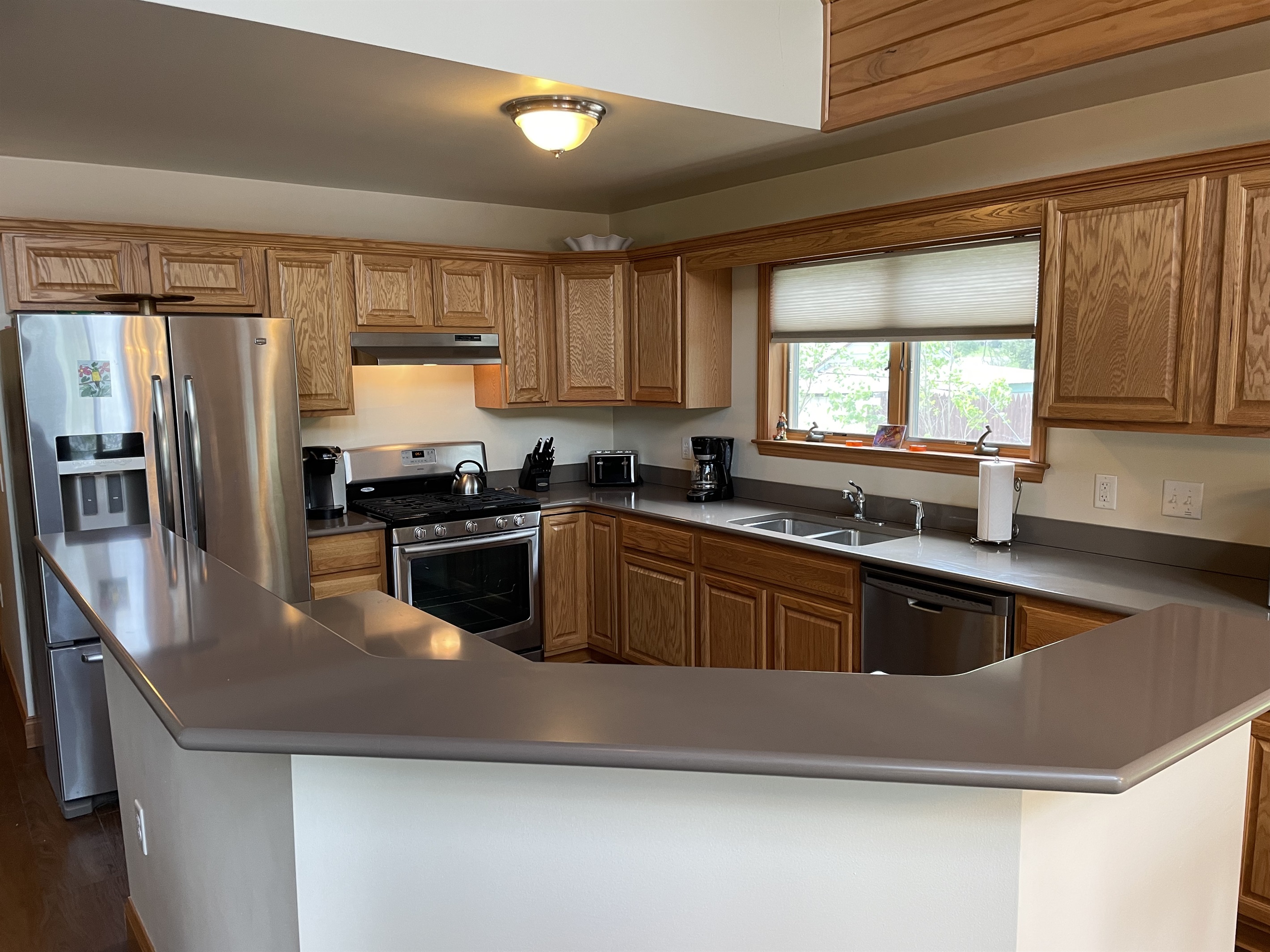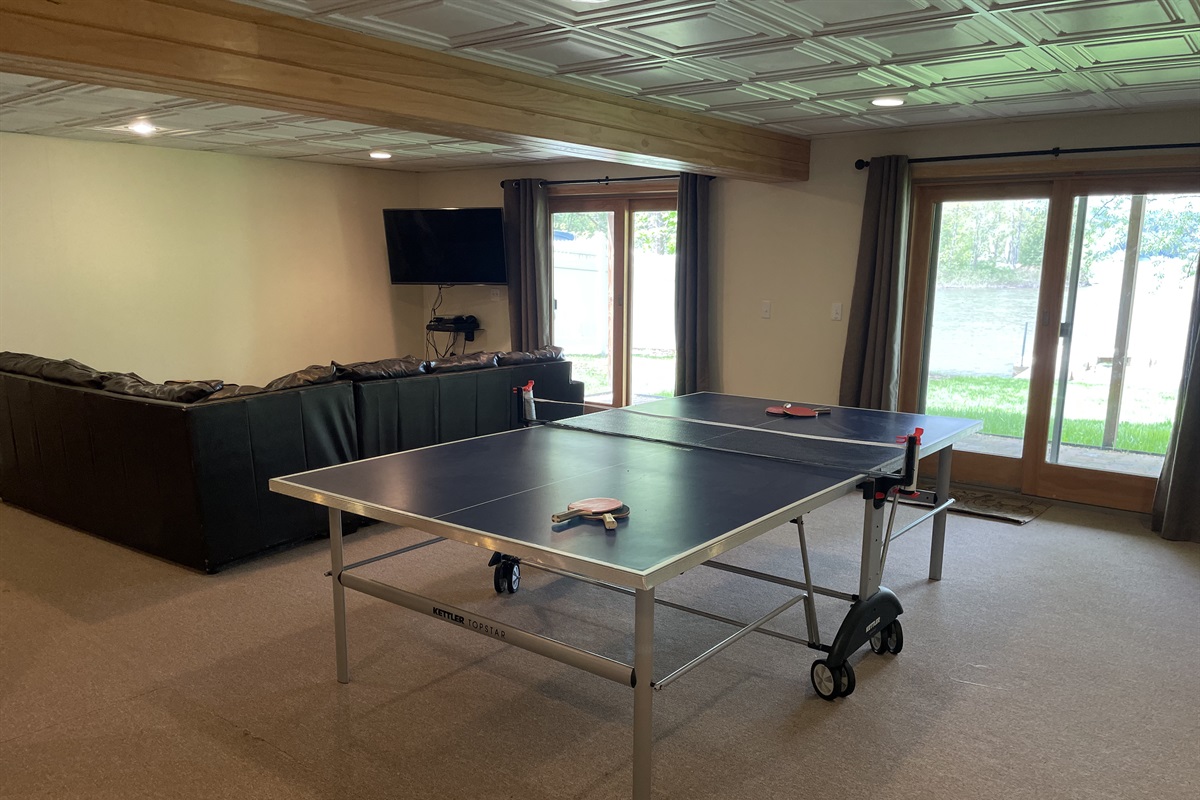 The open floor plan allows the living area, dining area and kitchen all to enjoy a water view through the sliding glass doors and the multiple windows. The doors lead out to the 480 square foot deck which is set up for relaxing anytime of day. The hosts provide a 675 square foot game room, complete with air hockey, a basketball game and more. This home is especially designed for casual, comfortable living and is graced with a stylish, tasteful decor.