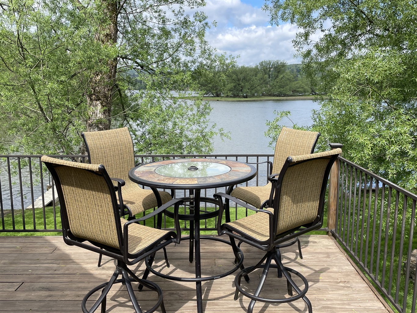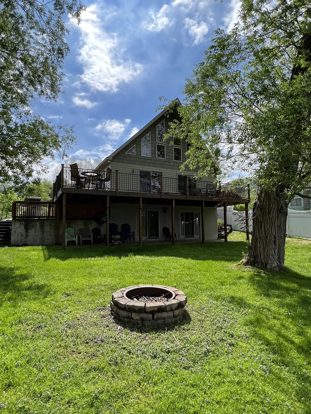 Riverbend - GOODYEAR LAKE - Built in 2014, Riverbend takes its name from the bend in the northern channel of the lake. This dramatic waterfront home has a large wrap around deck which is a perfect place to enjoy the beautiful sunsets across the water with the rolling hills beyond. The lawn gently slopes down to the 100 foot waterfront with private dock. This is a great area for fishing. A fire pit between the house and the water is great for family campfires! A kayak, paddleboard and paddle boat are also included.