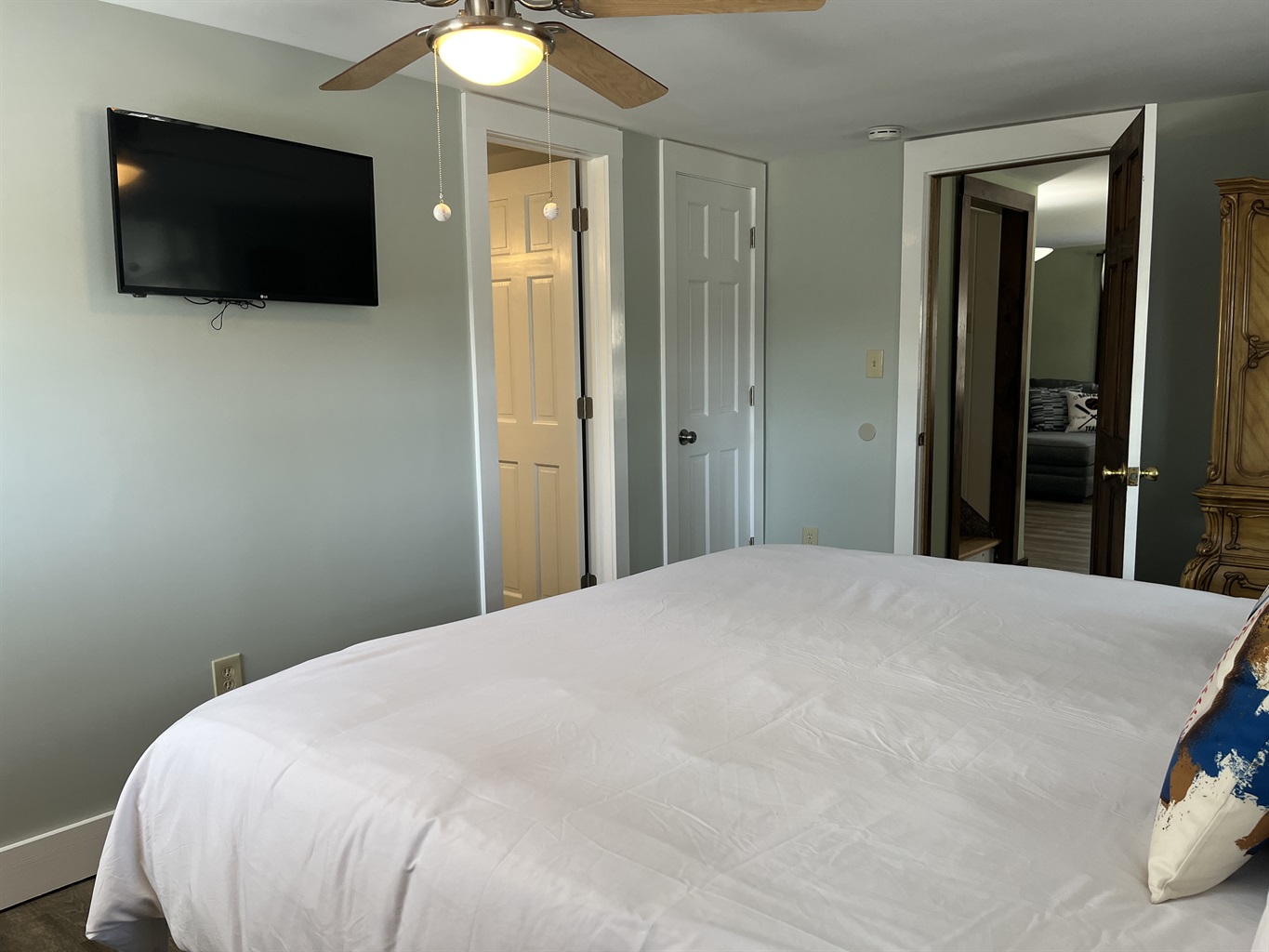 Once inside you will be greeted by a very spacious great room (1 of 2 living rooms) with a sectional couch and love seat, a large ROKU TV for keeping up with the game. A completely renovated kitchen has new stainless steel appliances, hardwood flooring, a mosaic backsplash, beautiful white cabinetry with everything you need to make a meal and a convenient eat-in dining table in the center of the room. Just off the kitchen there is a separate formal dining room with seating for 10 people at the custom built dining table as well as access to the side porch for easy grilling or enjoy a meal outside on the deck, overlooking the Dreams Park. Through the dining room you will find a 2nd large living room with another large Roku TV, making it easy to spread out as a group. The first floor is completed by a King bedroom and twin bunk bedroom, sharing a "Jack and Jill" bathroom with tub/shower combo between the two bedrooms. Upstairs there are 4 additional bedrooms including a king bedroom with a private balcony overlooking the backyard and firepit area. The 2nd floor bedrooms share the hallway full bath with tub/shower and washer and dryer.