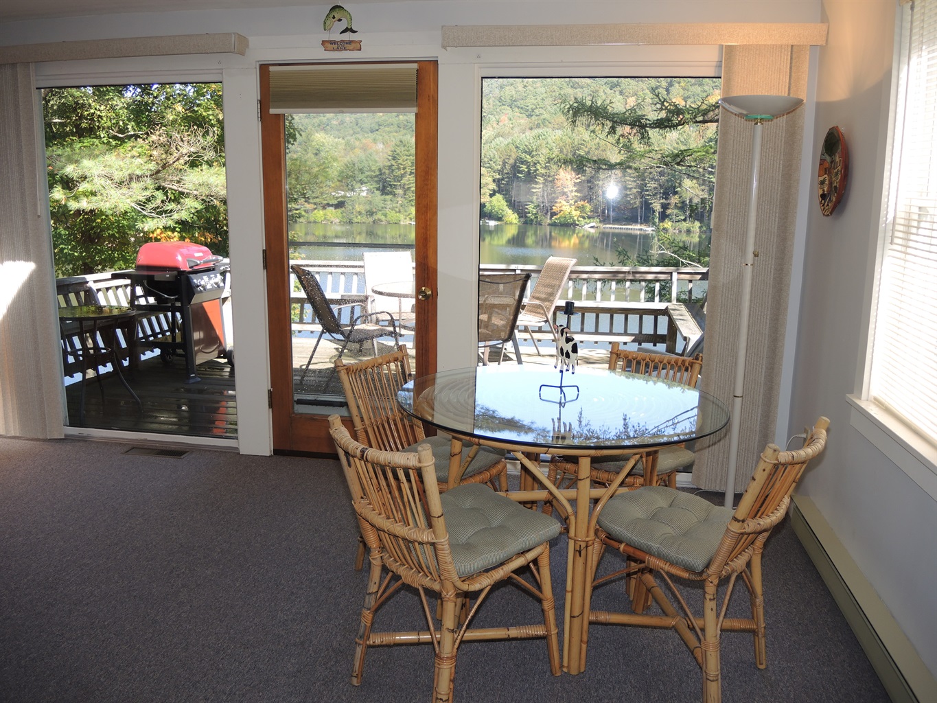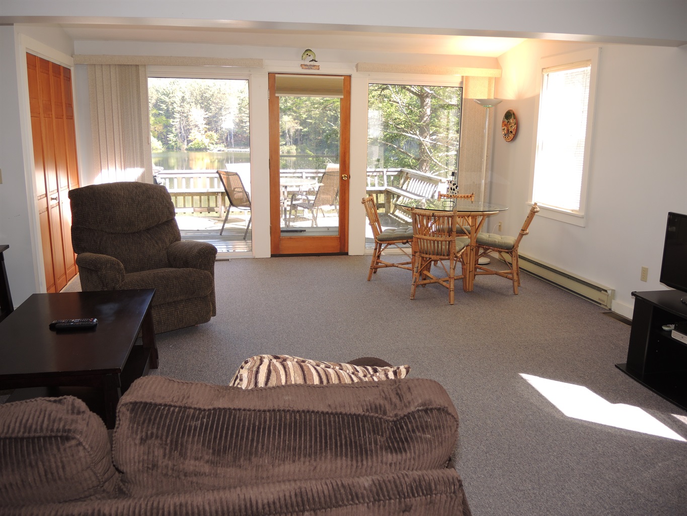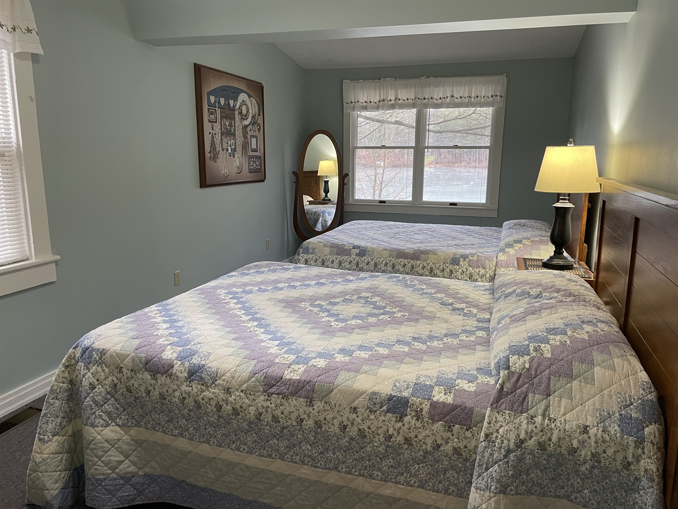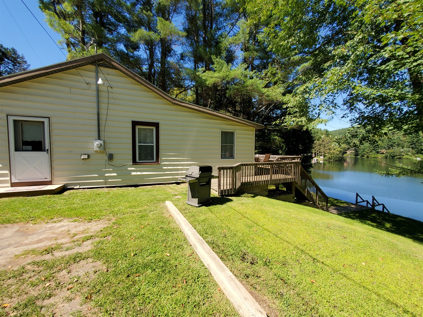 This cottage has 2 bedrooms and one bath. The open floor plan allows for a view of the lake from the dining area, the living area and the kitchen. Glass doors open out to an open deck for outside grilling and dining. Serenity Cove is an ideal choice for someone seeking some solitude.