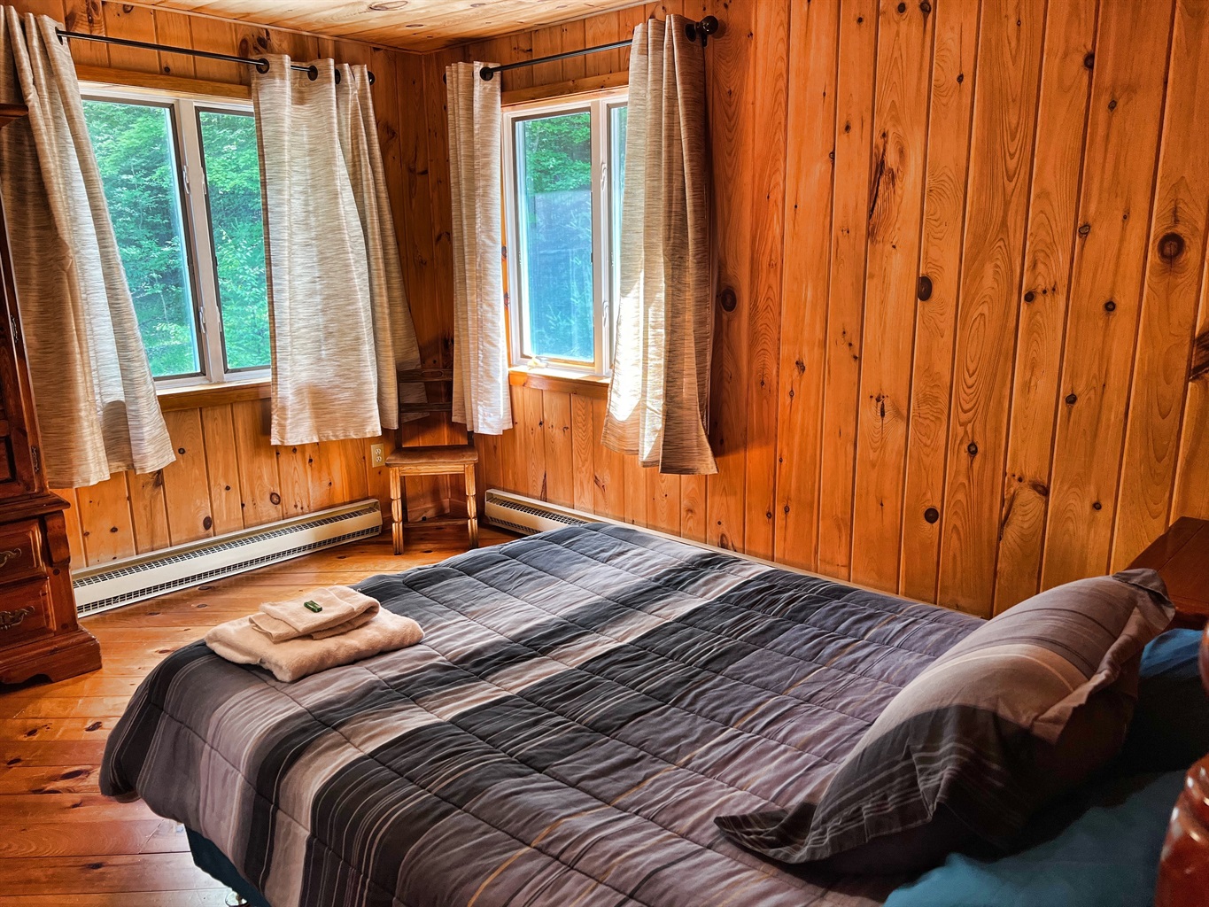 The 5 acre private pond is abundant with largemouth bass, ready for you to catch and release! You are welcome to bring your own rooftop boat for playing or fishing around the pond. If not there is a kayak/canoe/SUP rental shop in Portlandville that will deliver. Sorry, NO motorboats allowed. The pond is just across the road and a lightly wooded area on the other side. There is a large open yard around the house for outdoor play.