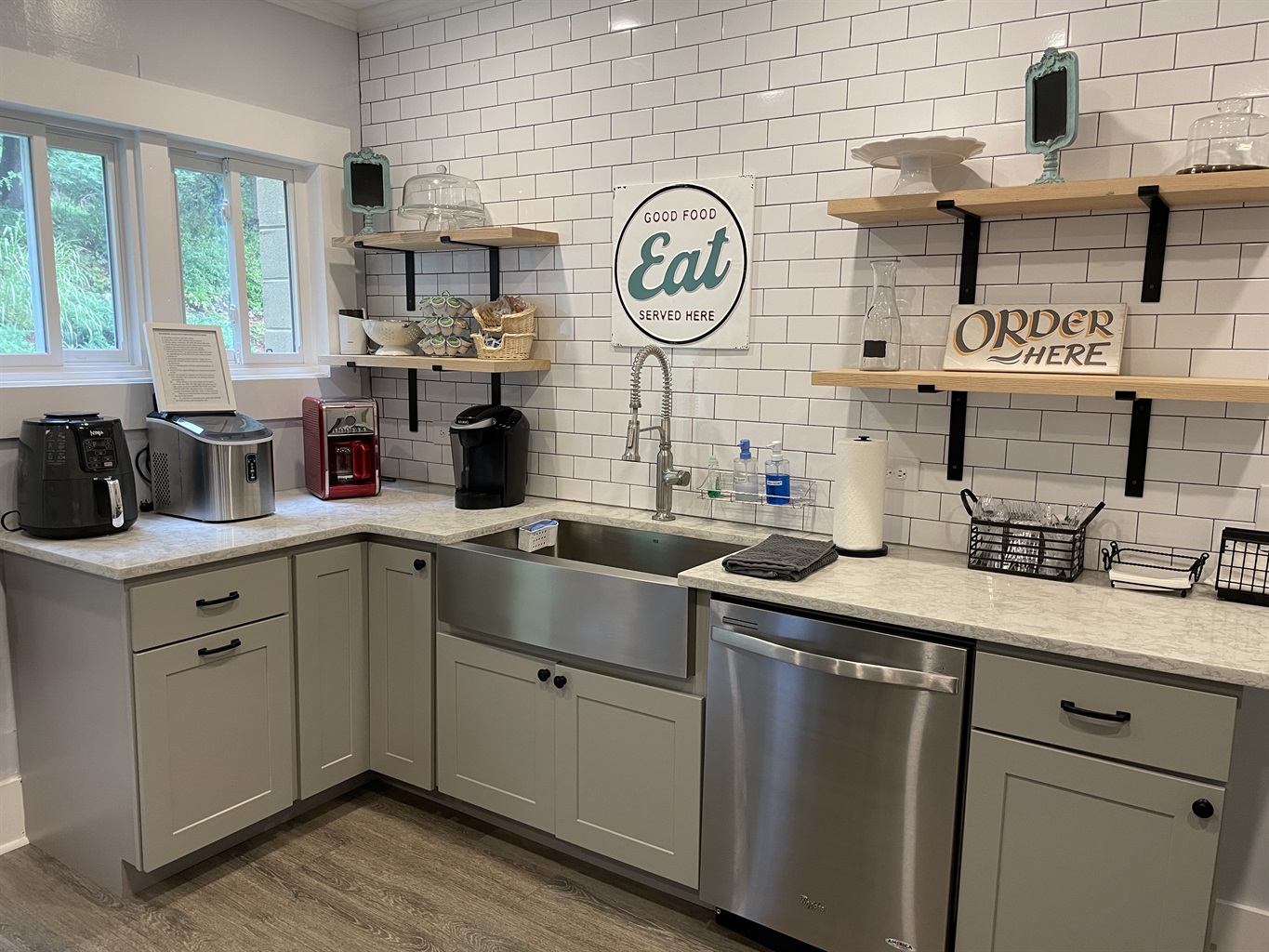 A large living room and wet bar welcome you to relax and regroup during downtime. The recently renovated kitchen and dining room provide ample room for your group of 9 - 13 people. Outside dining is provided. Enjoy grilling outside.