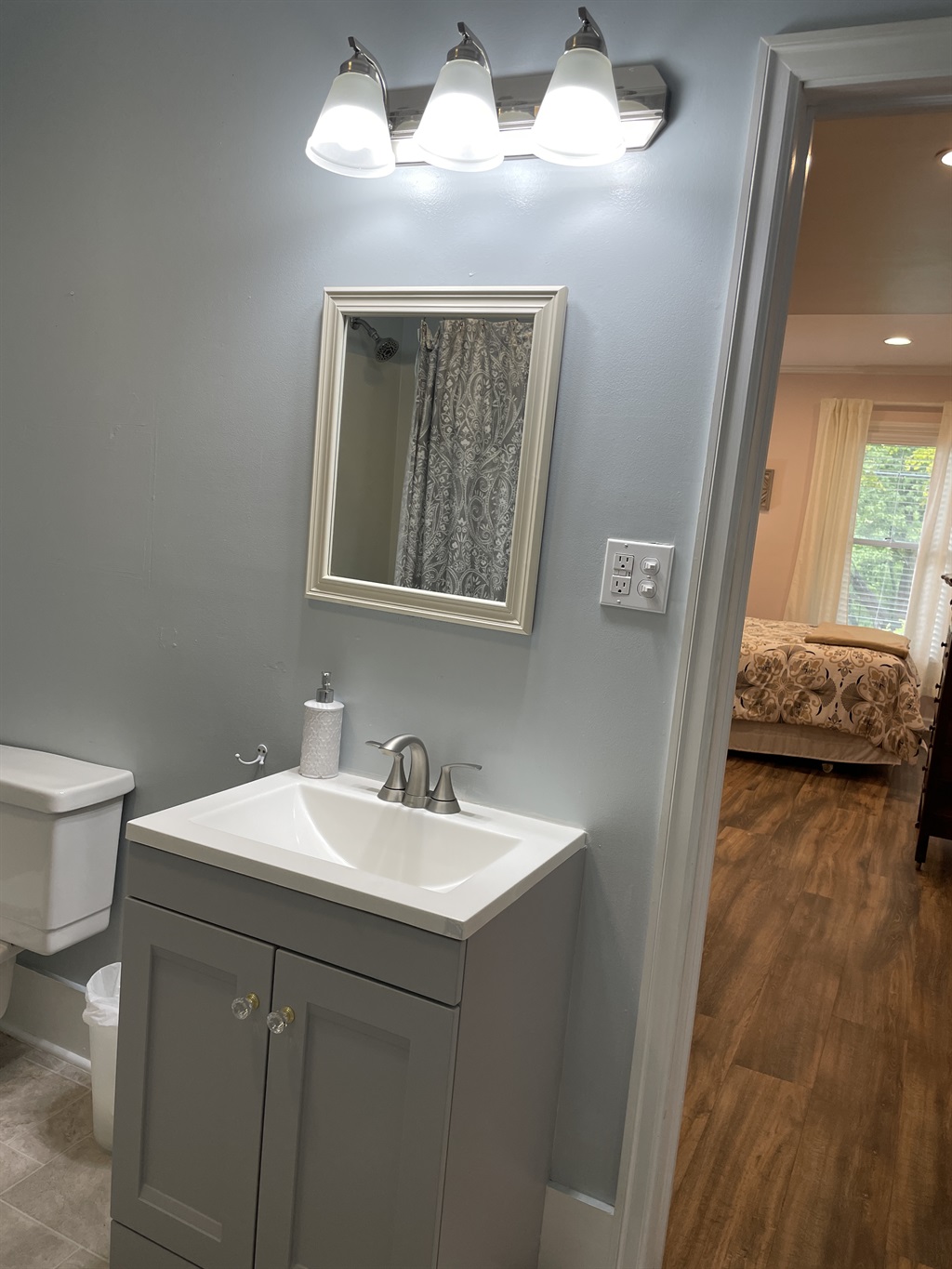 This home has 6 bedrooms, 5 full baths, and 2 half baths. There is a 2 bedroom suite on the first floor with a bath ensuite. There are 3 bedrooms on the second floor, 2 with ensuite baths, 1 with bath nearby in the hallway. The 6th bedroom is within an apartment on the 2nd floor with its own bedroom, bathroom, living area, and kitchen. This apartment can be closed off from the rest of the house if desired. The 2nd-floor apartment has its own entrance from outside and a balcony, as well as access from inside.