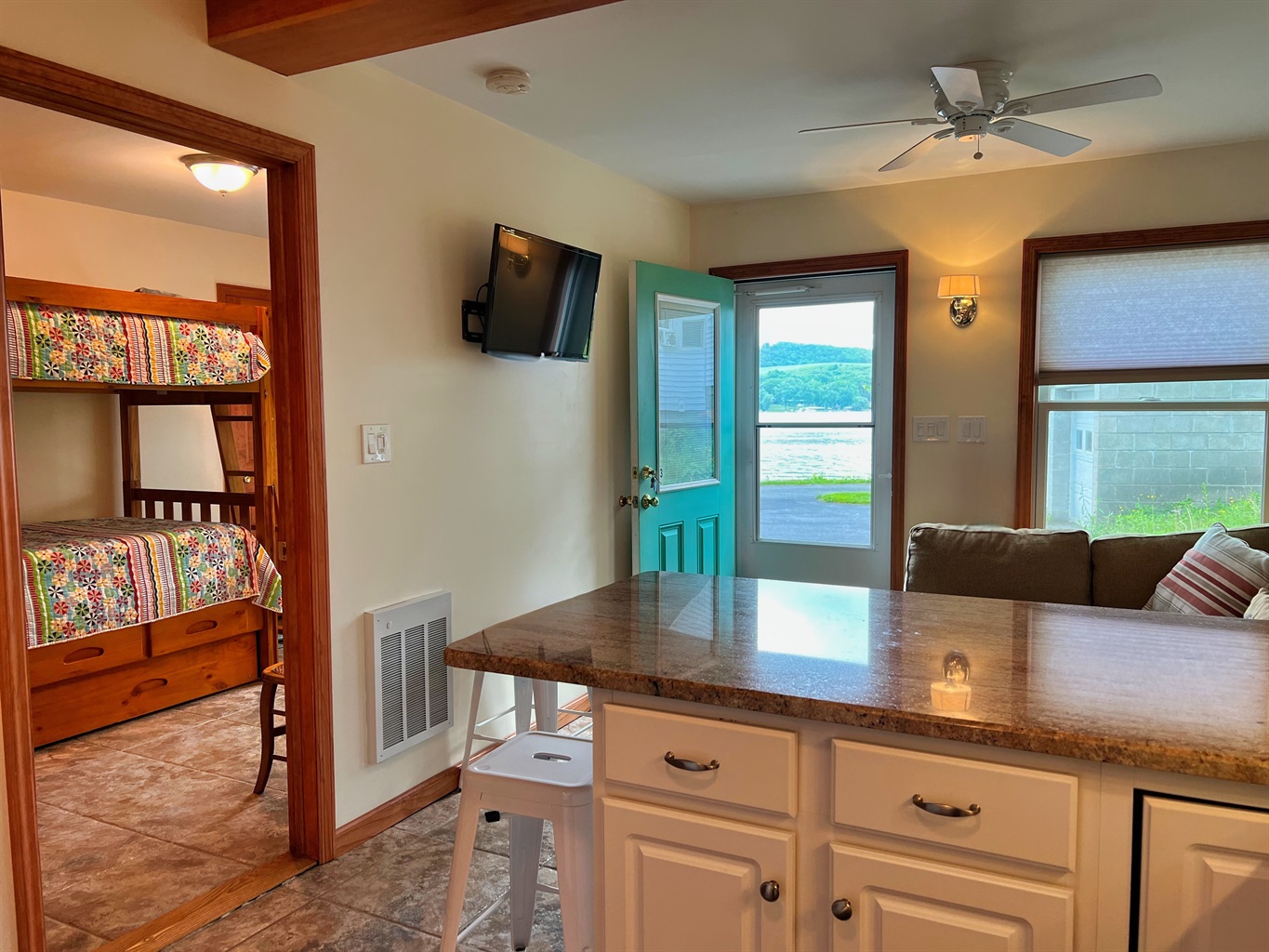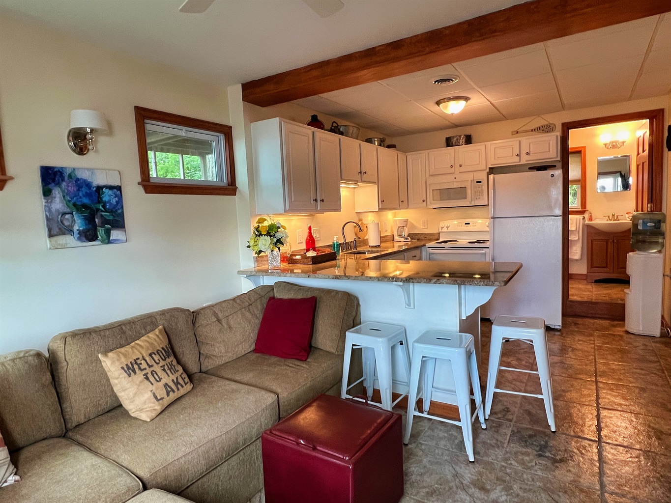 Trout Brook is is an ideal choice for the discerning traveler. The tasteful, upscale décor in Unit 3 includes granite counter tops and contemporary furnishings, and tile floors.