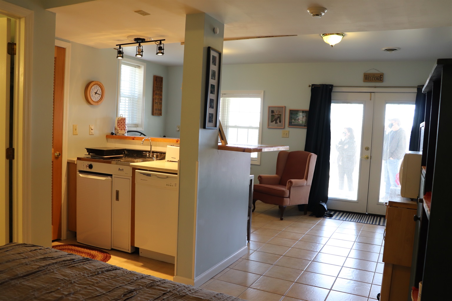 The Wheelhouse Studio is a private studio apartment with a separate entrance and private deck. The main house is owner-occupied.