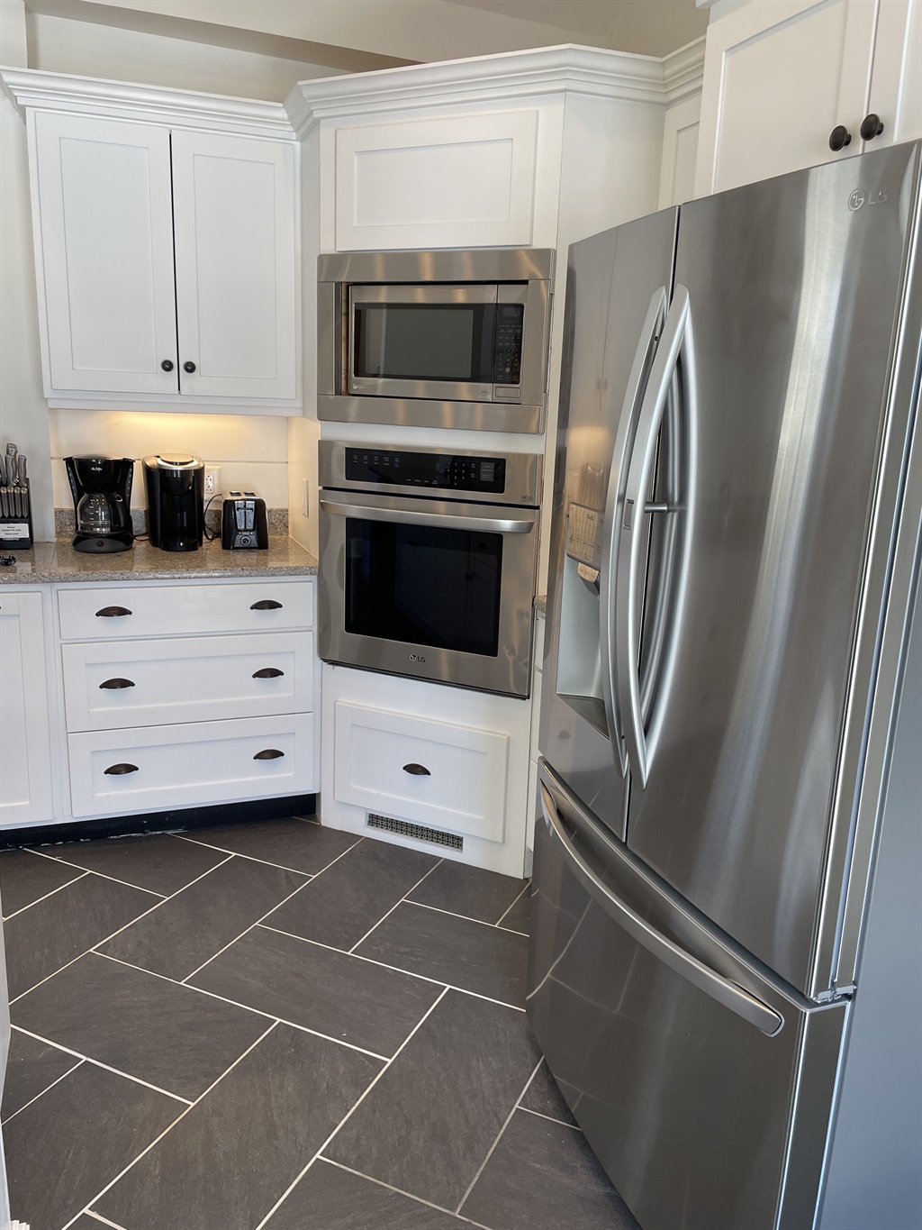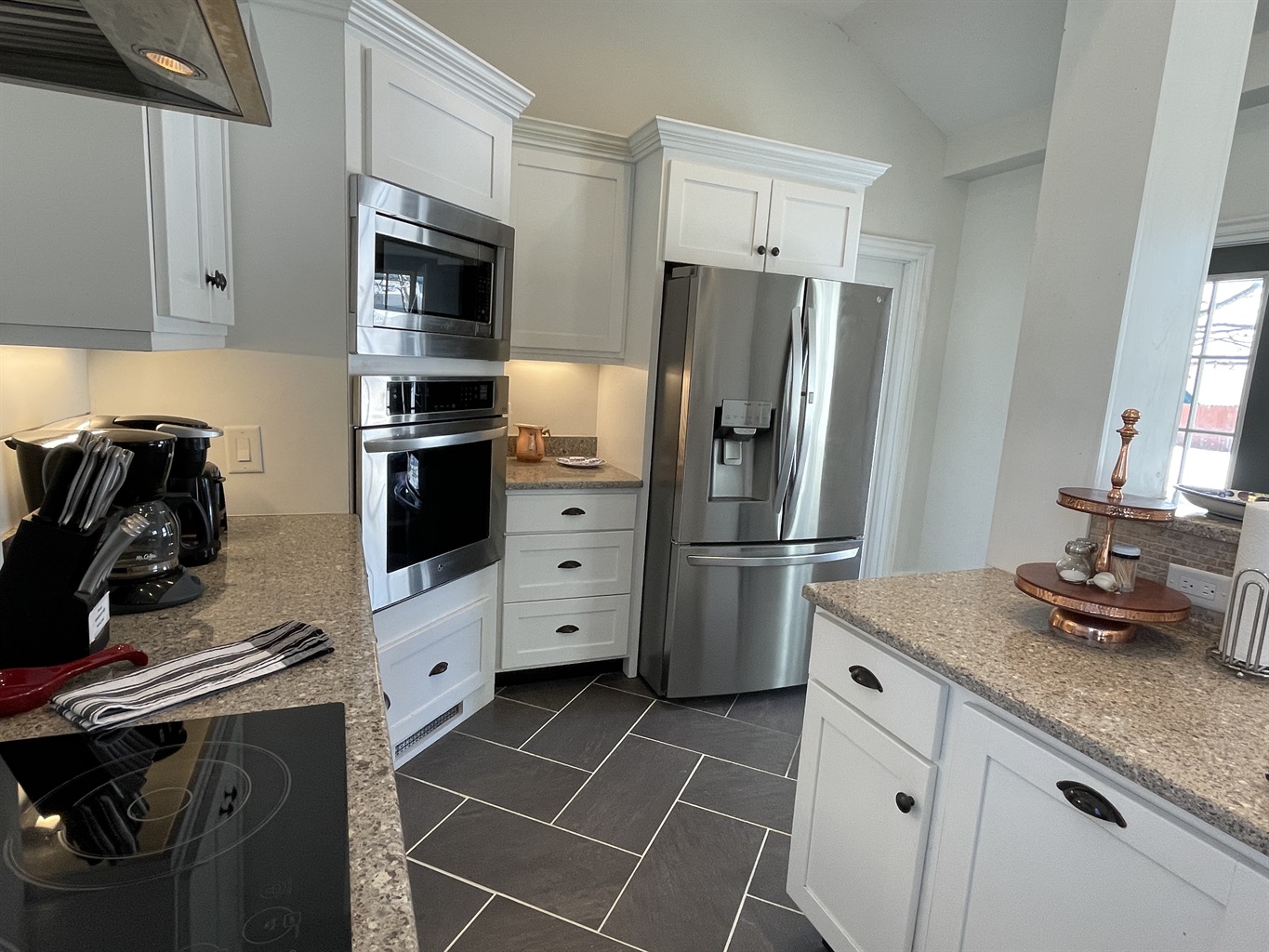 The large kitchen with beautiful countertops, shiplap wall treatment and new appliances will have the aspiring chef in your group full outfitted to make meals in between games. There is a great side deck right off the kitchen on one side and out the other door you are directly into the back yard. Whether you are bringing meals to the outdoor dining table or running snacks into the yard for the kids, this kitchen has you covered. A beautiful dining room right off the kitchen with additional comfy seating is great for enjoying your meals or hanging out for a little after-dinner conversation. This room also has a Smart TV hung conveniently so you never miss a pitch of the big game you just have to have on during dinner. Sorry Mom, just one last inning! A bright and beautiful living room with wall mounted TV and electric fireplace is the perfect spot to sit to catch up on the day's events or just slow down before bed. Also in the 1st floor there is a terrific bathroom with a spacious custom tile shower and glass surround.